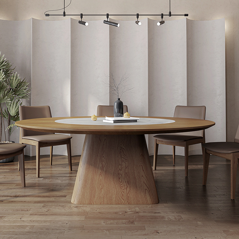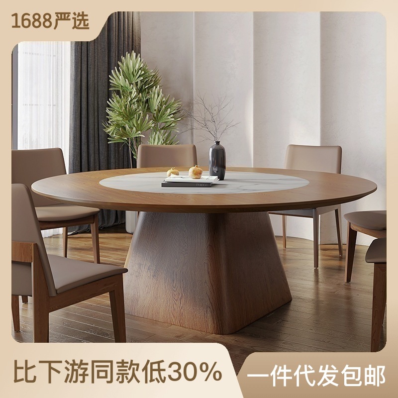 Bàn ăn đá phiến tích hợp bằng gỗ nguyên khối của Trung Quốc cho bữa tiệc tại nhà khách sạn Bàn tròn lớn màu óc chó Bàn ăn tròn lớn kết hợp ghế