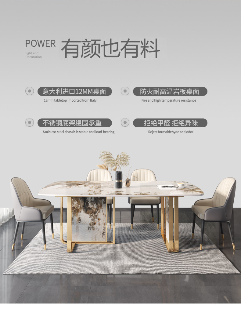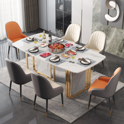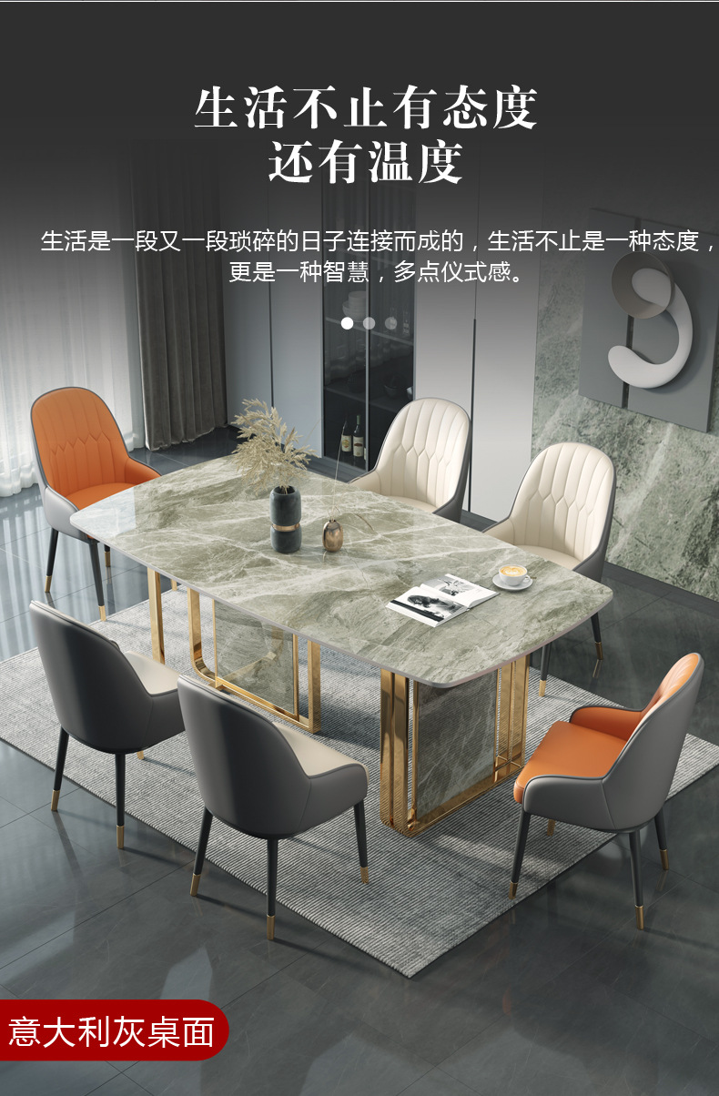 Bàn ăn đá phiến tối giản của Ý hiện đại tối giản hộ gia đình sang trọng khung kim loại hình chữ nhật bàn ăn hoa văn đá phiến là sản phẩm nổi bật trong dòng bàn ăn nhập khẩu, thiết kế hiện đại và sang trọng, phù hợp với nhiều không gian nội thất cao cấp.