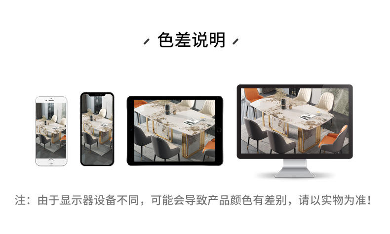 Bàn ăn đá phiến tối giản của Ý hiện đại tối giản hộ gia đình sang trọng khung kim loại hình chữ nhật bàn ăn hoa văn đá phiến
