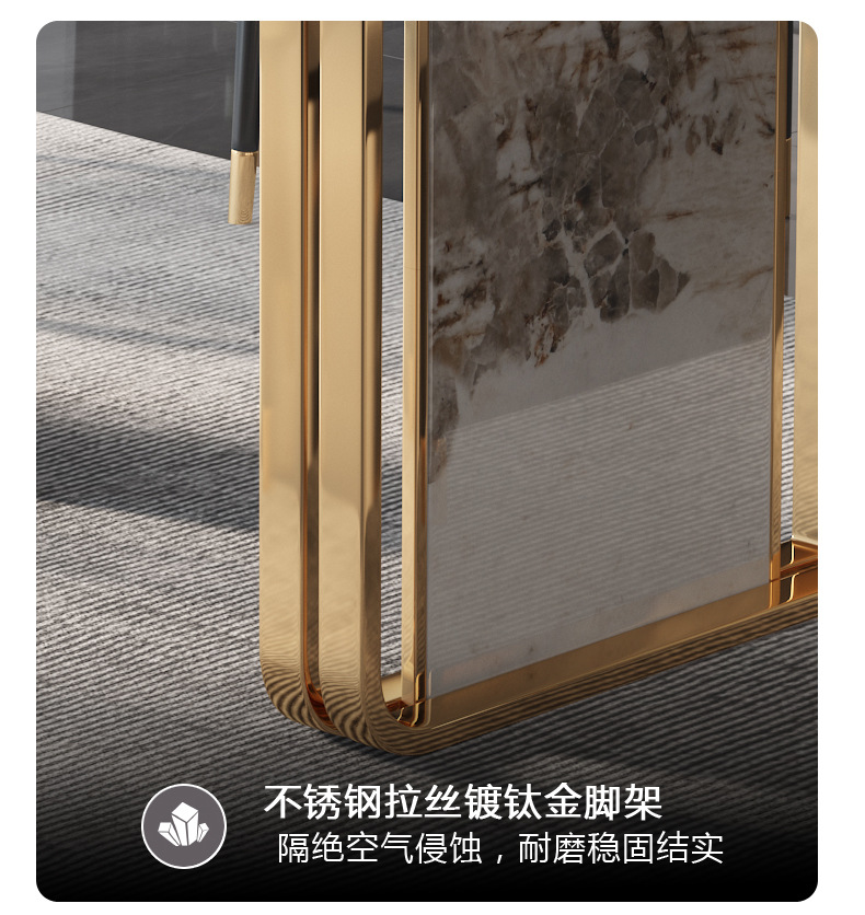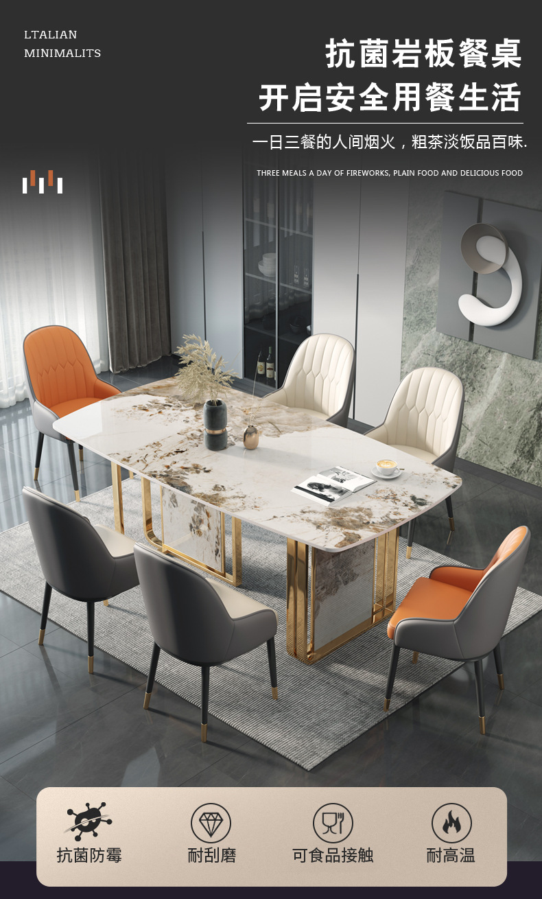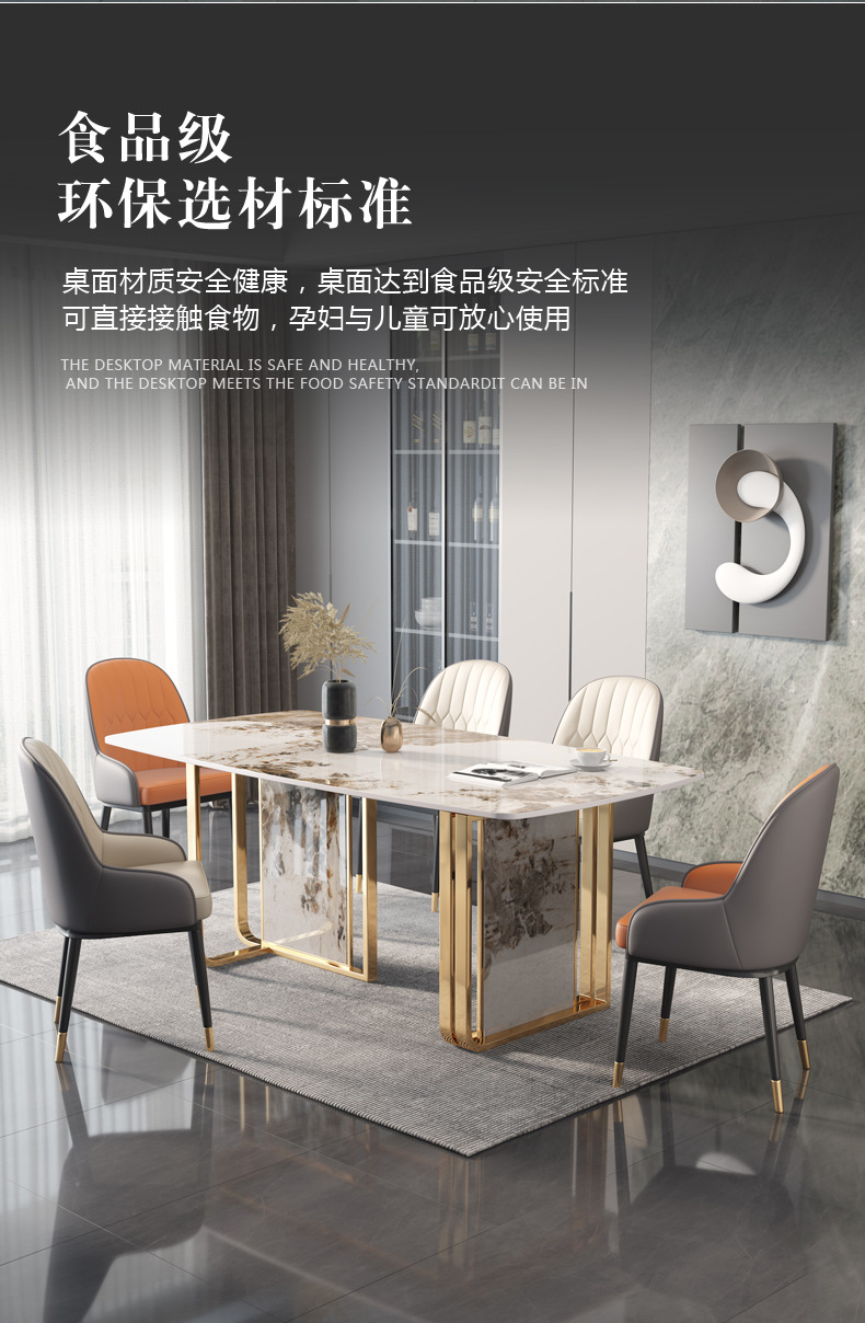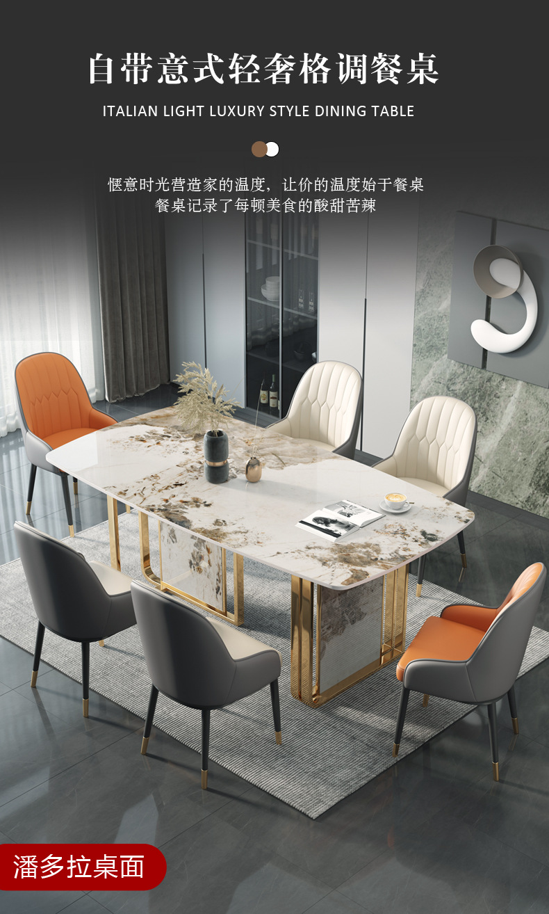 Bàn ăn đá phiến tối giản của Ý hiện đại tối giản hộ gia đình sang trọng khung kim loại hình chữ nhật bàn ăn hoa văn đá phiến là sản phẩm nổi bật trong dòng bàn ăn nhập khẩu, thiết kế hiện đại và sang trọng, phù hợp với nhiều không gian nội thất cao cấp.