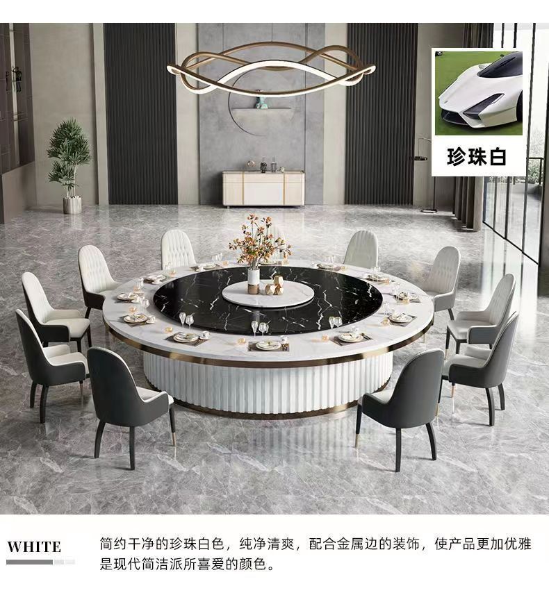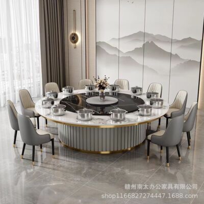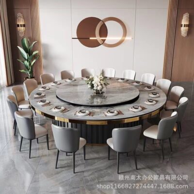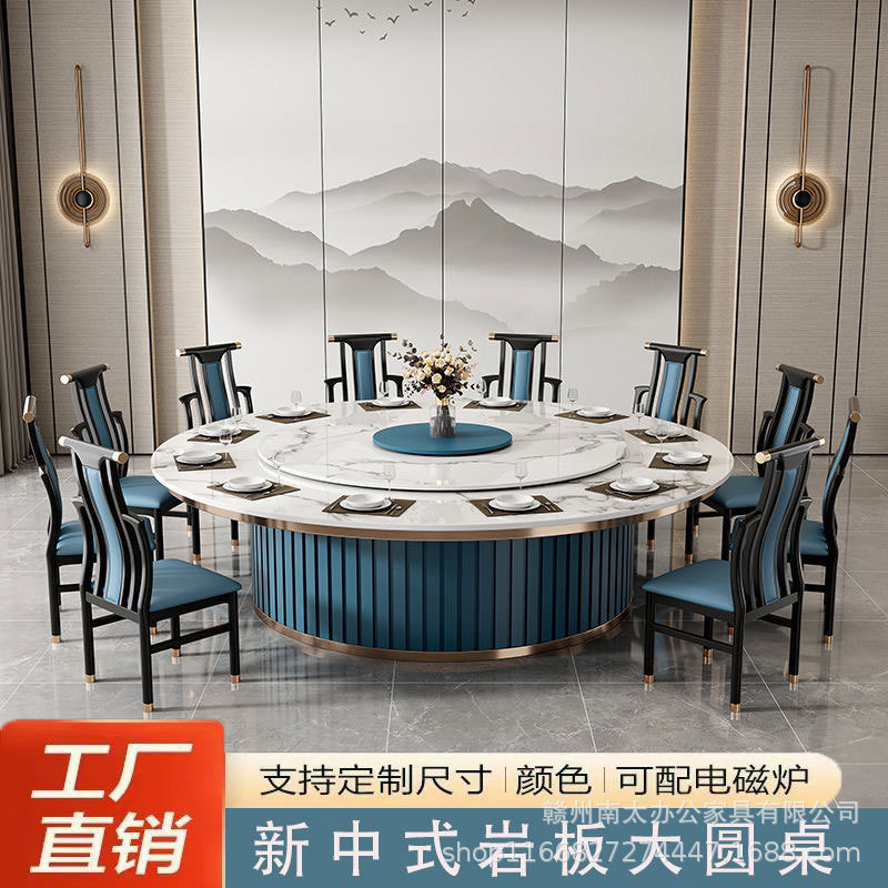 Bàn ăn đá phiến xoay tự động của khách sạn Bàn tròn lớn bàn xoay tự động khách sạn 16 người Phòng câu lạc bộ 20 người Bàn lẩu đá phiến