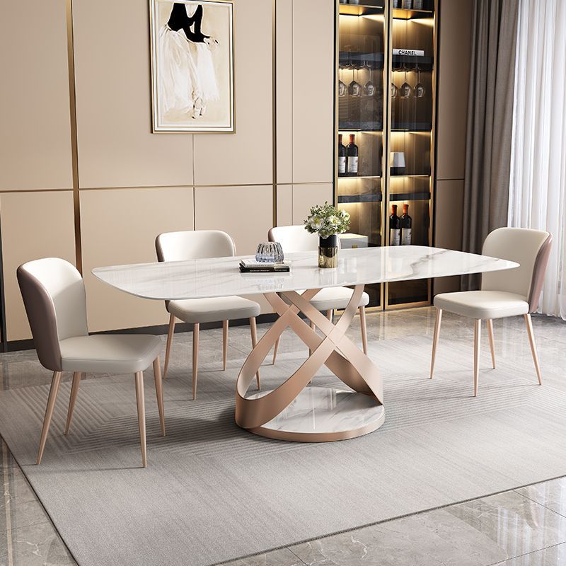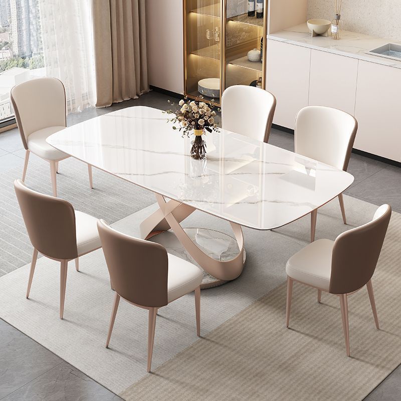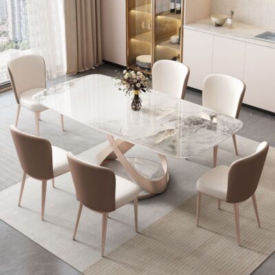 Bàn ăn đá phiến Ý sang trọng kết hợp với ghế hiện đại cho phòng nhỏ kiểu phương Tây.