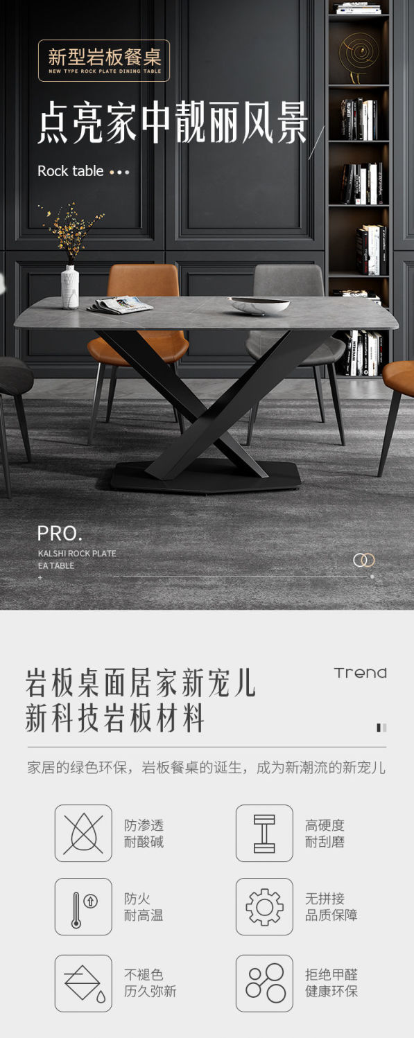 Bàn ăn đá phiến Zunfite kiểu Ý cho phòng nhỏ và nhà chung cư nhỏ – Bàn ăn hình chữ nhật đơn giản và hiện đại.