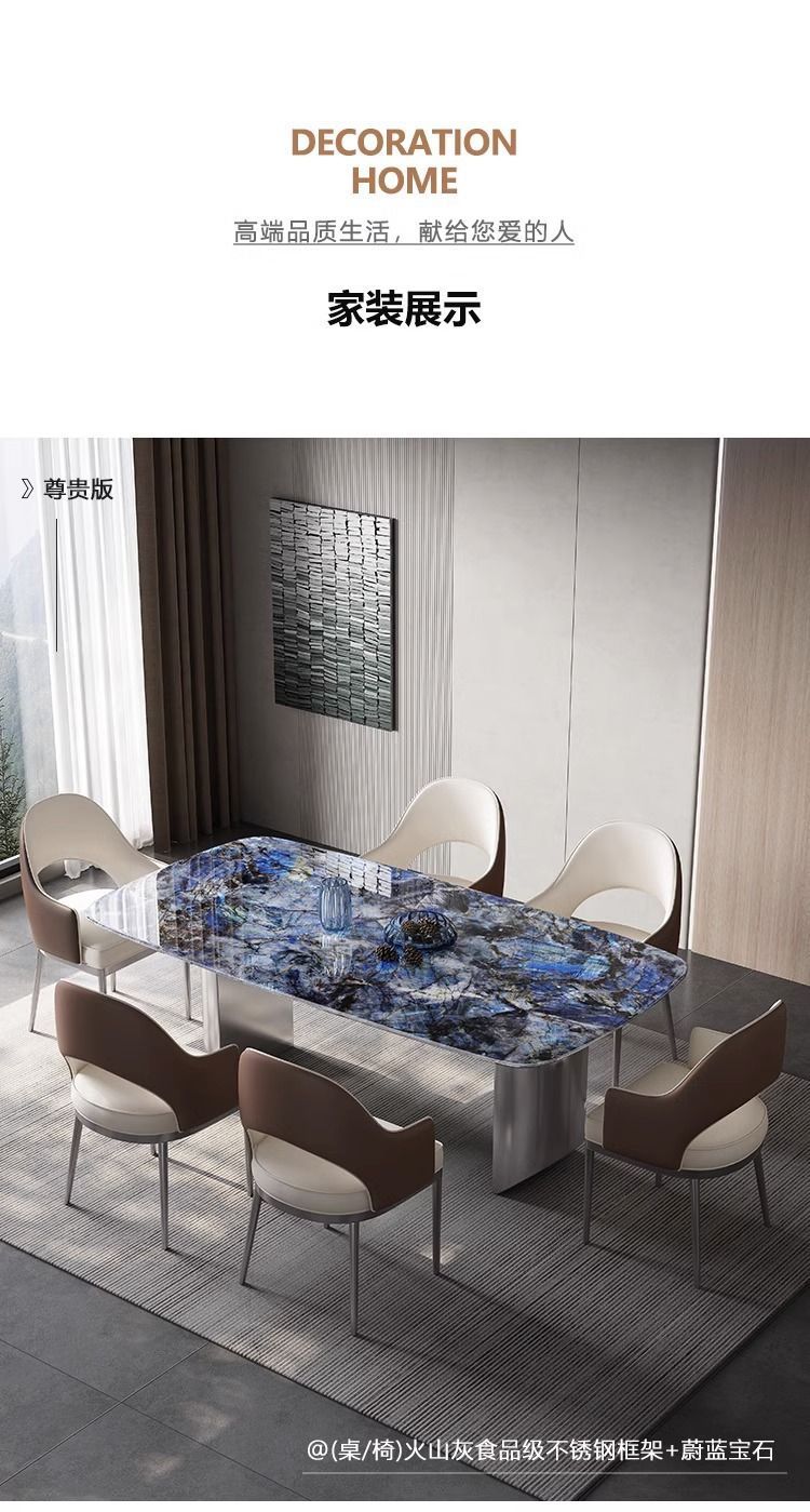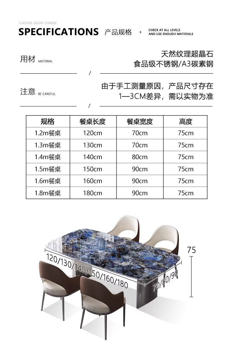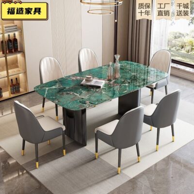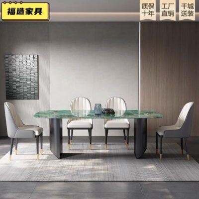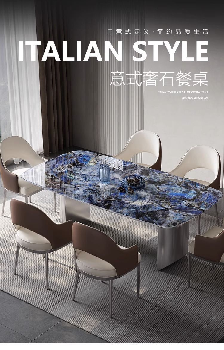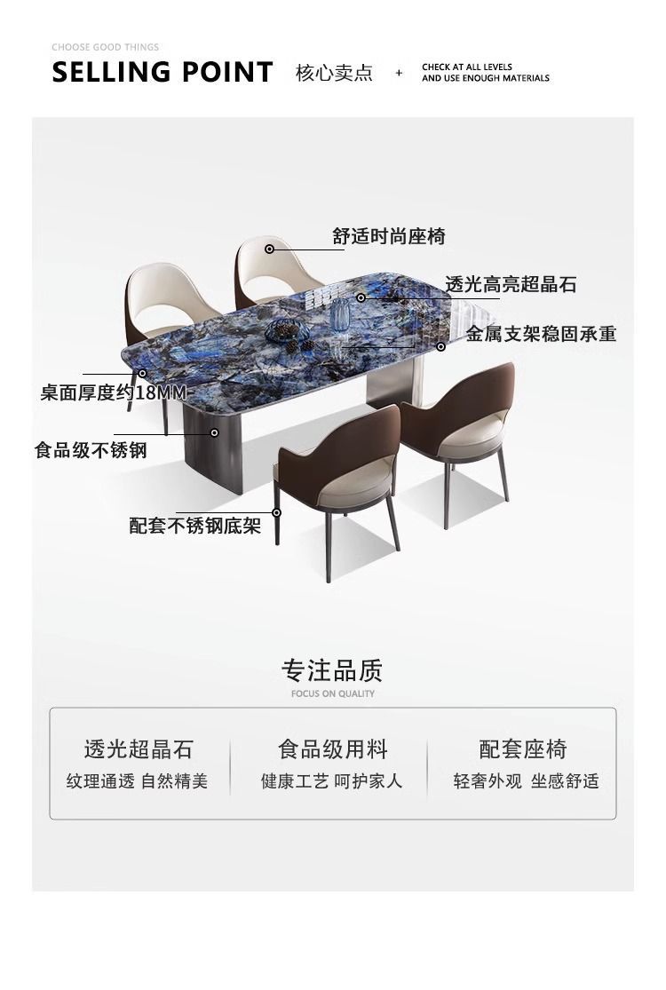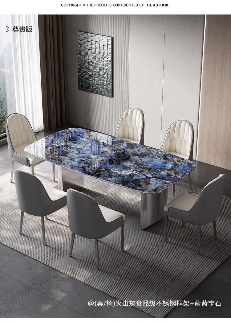 Bàn ăn đá vi tinh thể hình chữ nhật nhẹ sang trọng trong mờ đá cẩm thạch tự nhiên đá siêu pha lê nhà căn hộ nhỏ bàn ghế ăn đá sang trọng