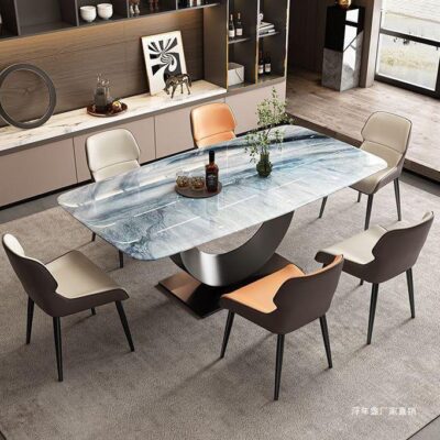 Bàn ăn đá vi tinh thể Ý Đẹp sang trọng pha lê màu đá siêu pha lê tấm đá thép không gỉ thiết kế đá sang trọng bàn ăn hình chữ nhật