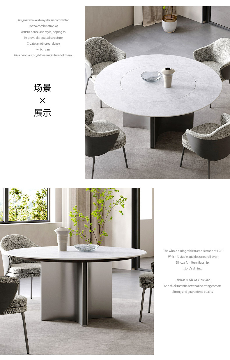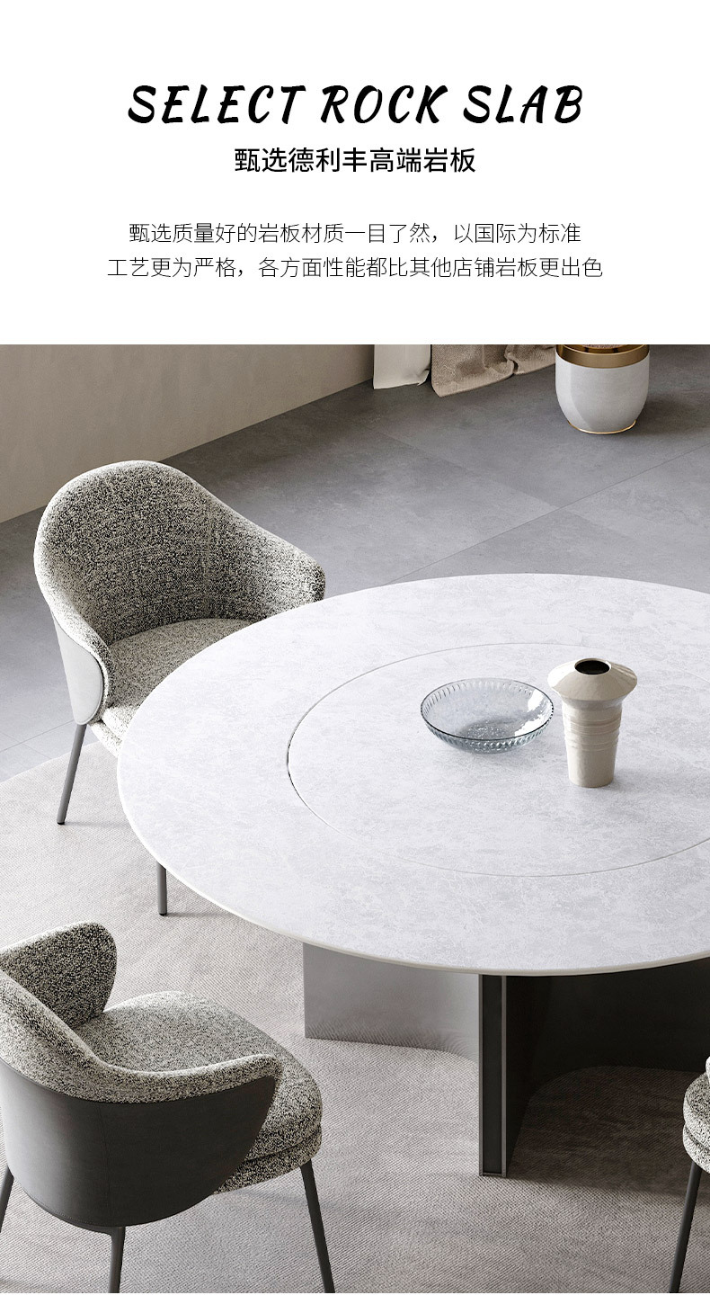 Bàn ăn Delifeng hình tròn có tích hợp bàn xoay nhà hàng lớn phẳng cao cấp mới biệt thự ánh sáng sang trọng tấm đá bàn ăn lớn