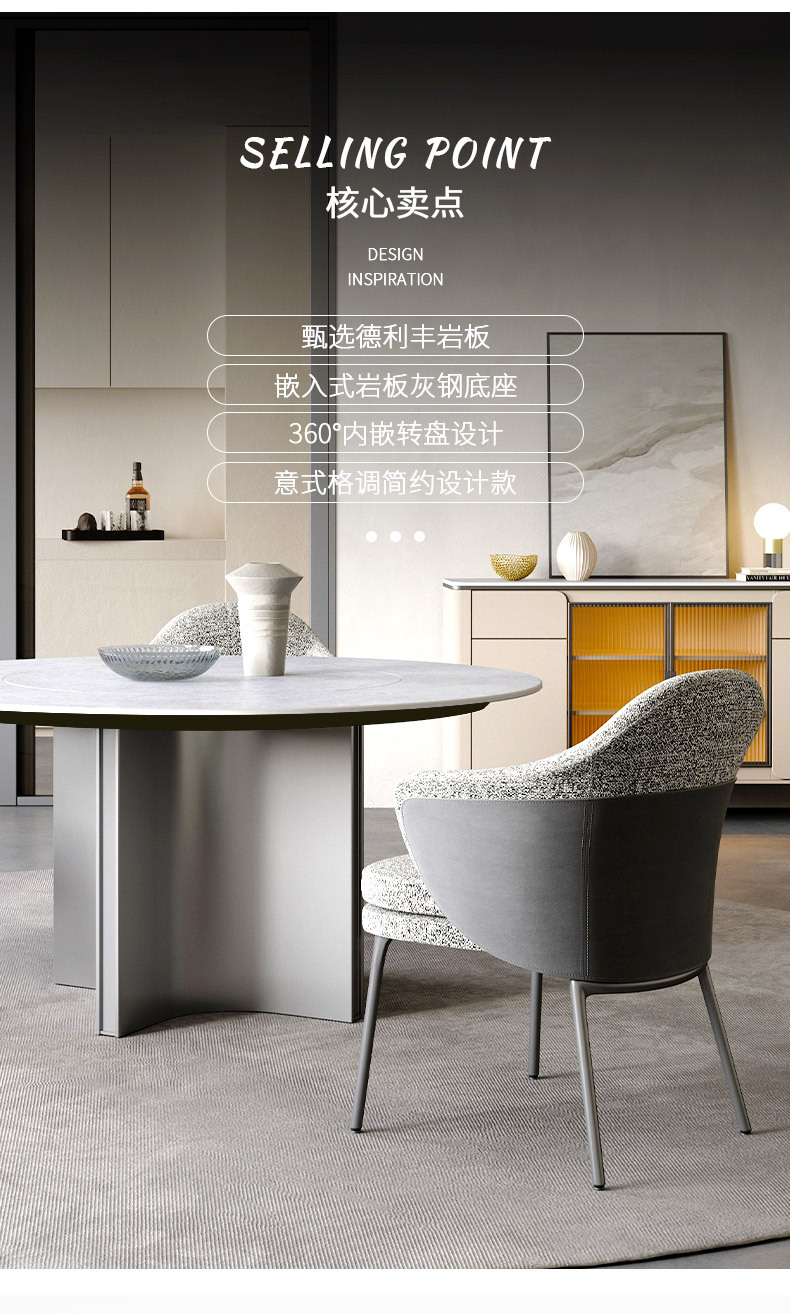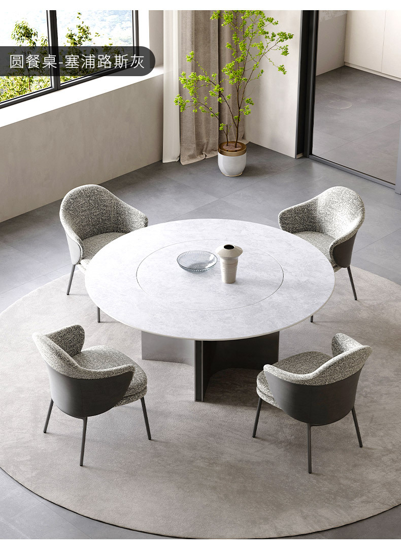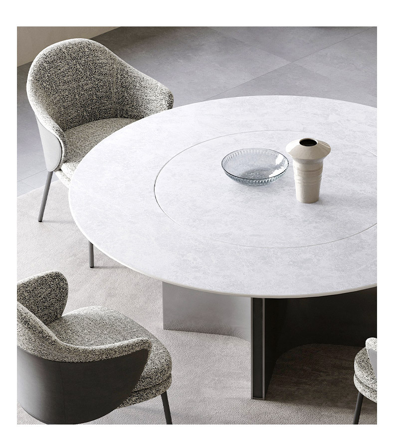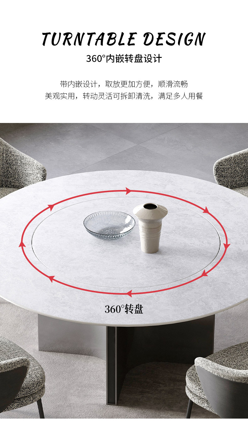Bàn ăn Delifeng hình tròn có tích hợp bàn xoay nhà hàng lớn phẳng cao cấp mới biệt thự ánh sáng sang trọng tấm đá bàn ăn lớn – Bàn ăn nhập khẩu cao cấp