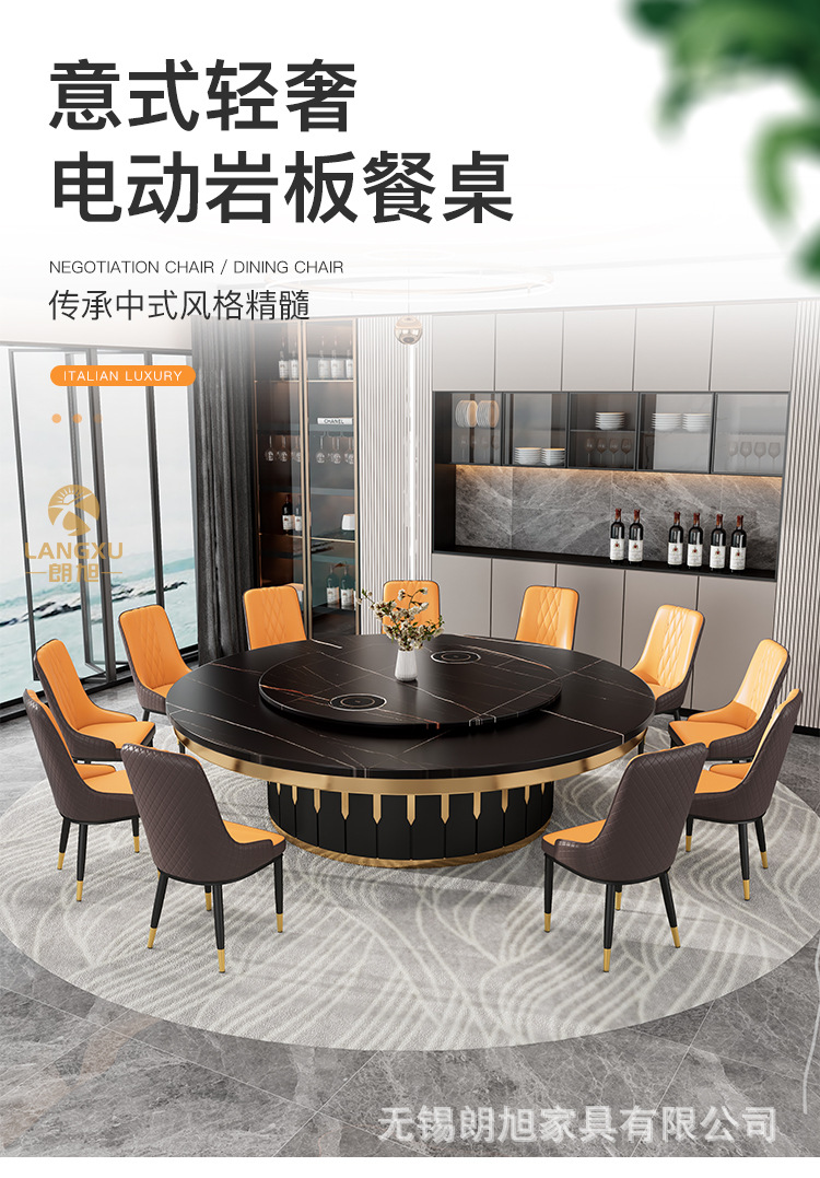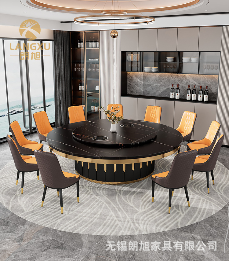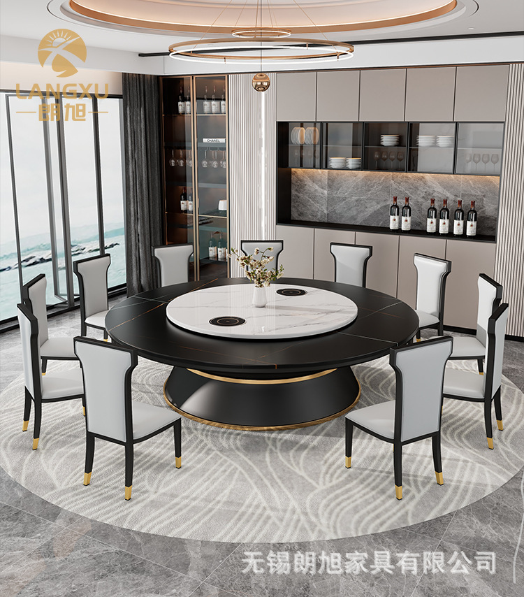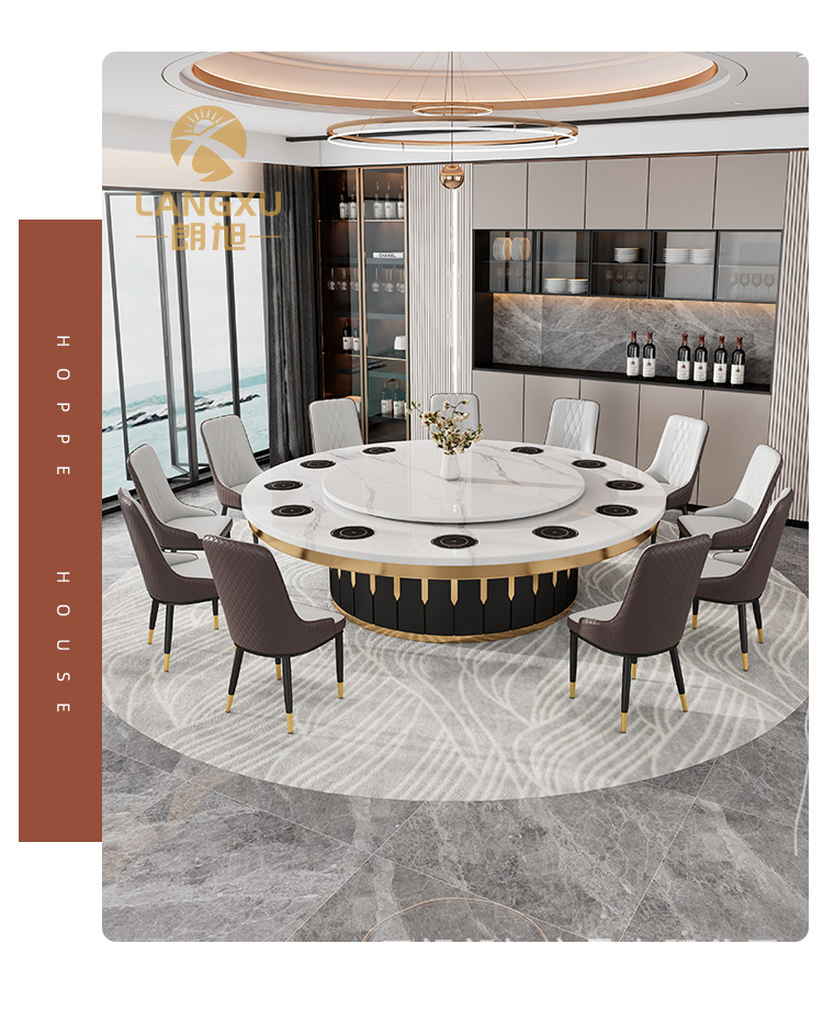 Bàn ăn điện bàn tròn lớn nhà hàng khách sạn doanh nhân bàn xoay sắt nghệ thuật 15 người 20 người Bàn lẩu Âu là sản phẩm nổi bật trong dòng bàn ăn nhập khẩu, thiết kế hiện đại và sang trọng, phù hợp với nhiều không gian nội thất cao cấp.