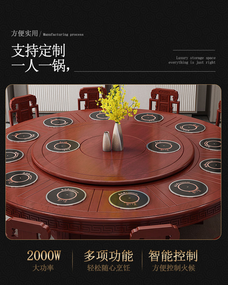 Bàn ăn điện khách sạn bàn tròn lớn nhà hàng Trung Quốc mới 12 người 20 người tấm xoay tự động hộp tiệc bàn lẩu là sản phẩm nổi bật trong dòng bàn ăn nhập khẩu, thiết kế hiện đại và sang trọng, phù hợp với nhiều không gian nội thất cao cấp.