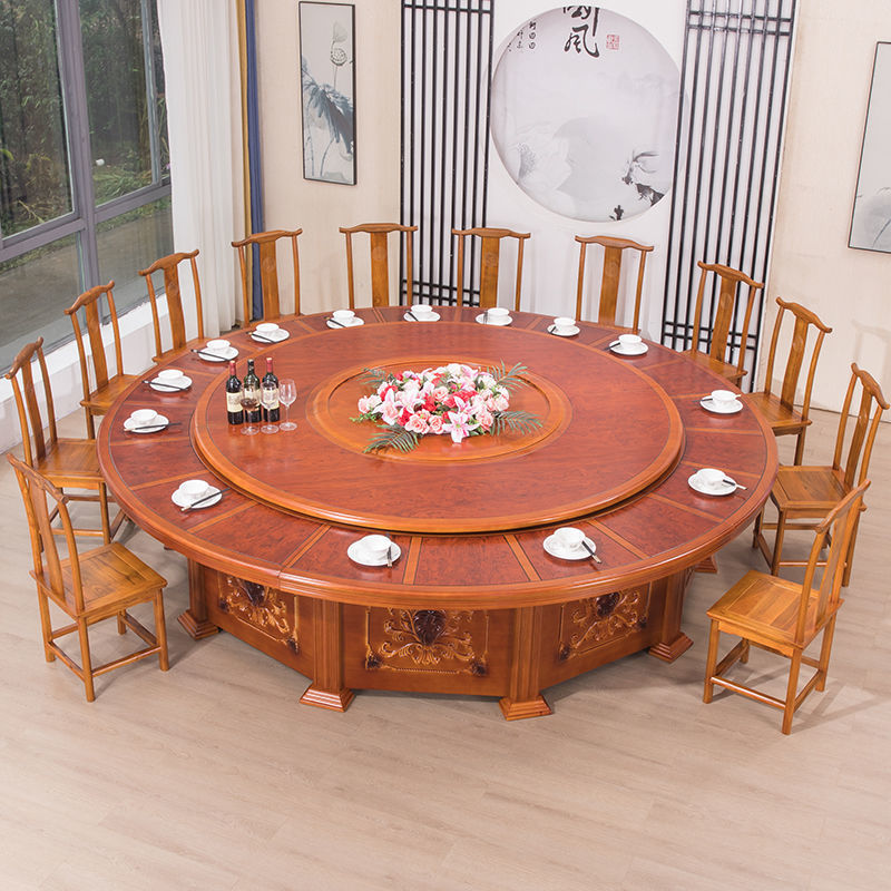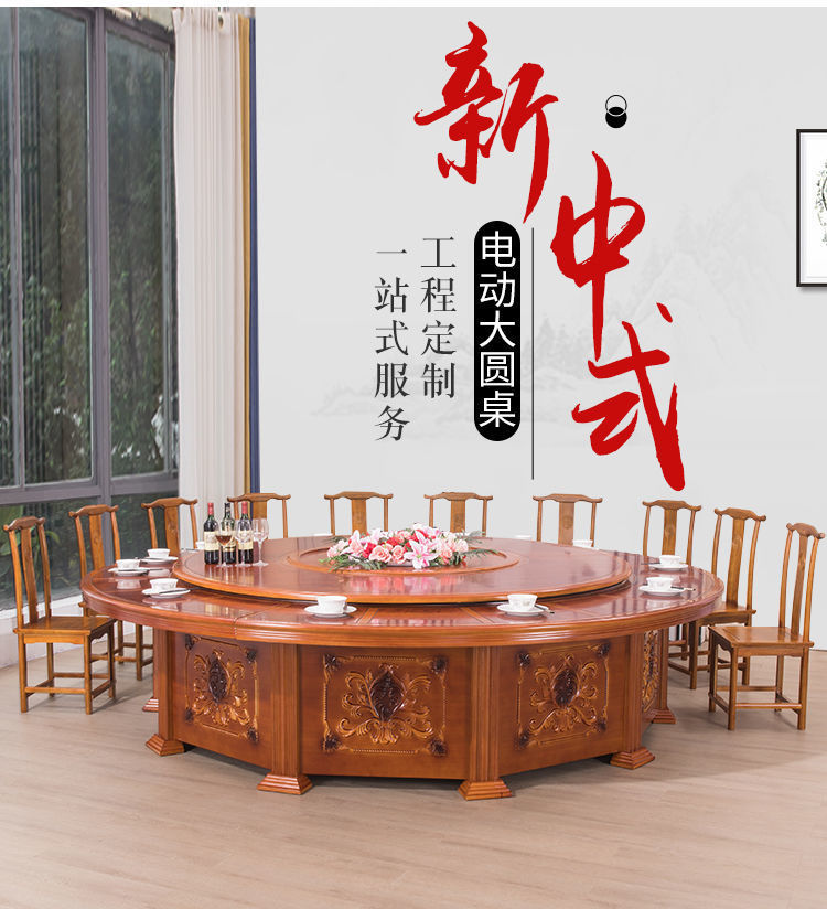 Bàn ăn điện khách sạn kiểu Trung Quốc mới bàn tròn lớn 15 người 20 người hộp khách sạn bàn xoay tự động bàn tròn ghế bàn lẩu – Bàn ăn nhập khẩu cao cấp