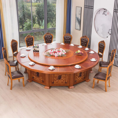 Bàn ăn điện khách sạn kiểu Trung Quốc mới bàn tròn lớn 15 người 20 người hộp khách sạn bàn xoay tự động bàn tròn ghế bàn lẩu là sản phẩm nổi bật trong dòng bàn ăn nhập khẩu, thiết kế hiện đại và sang trọng, phù hợp với nhiều không gian nội thất cao cấp.