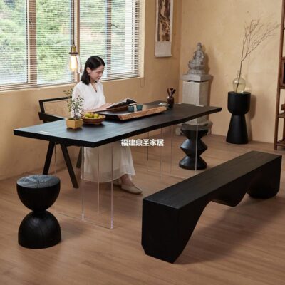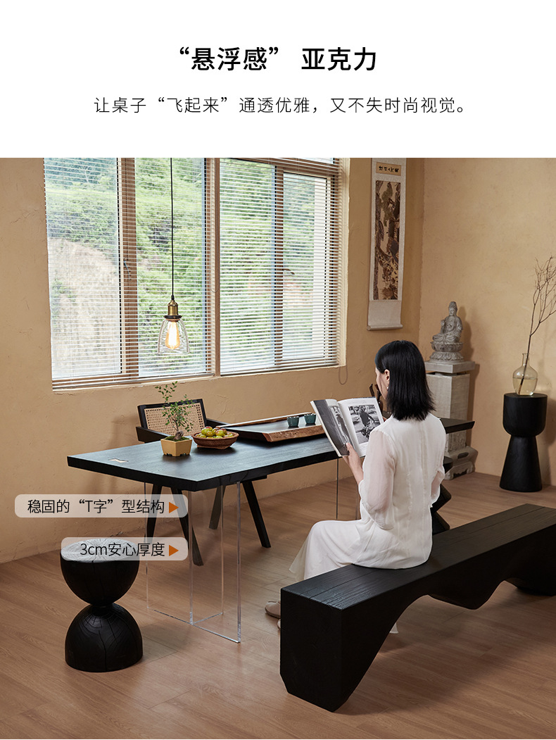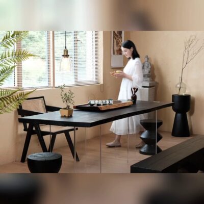 Bàn ăn đơn giản hiện đại, bàn ăn acrylic màu đen trắng tinh khiết đá phiến hình chữ nhật.