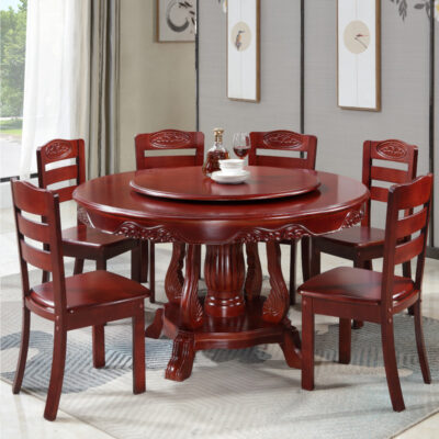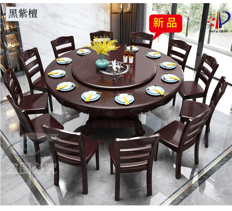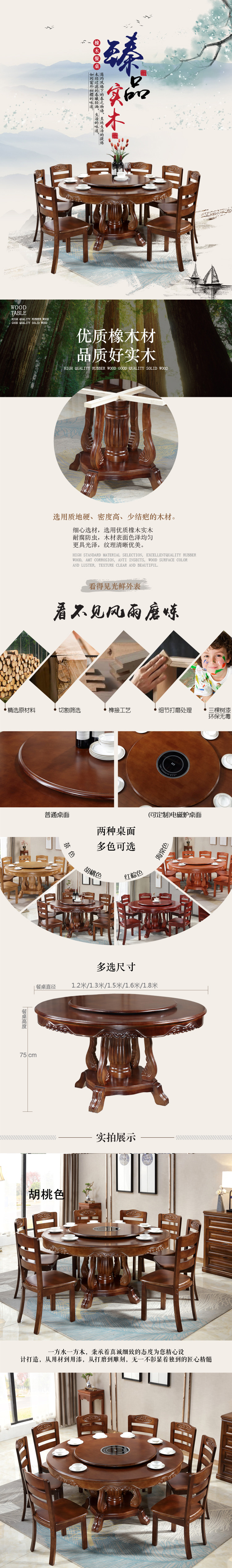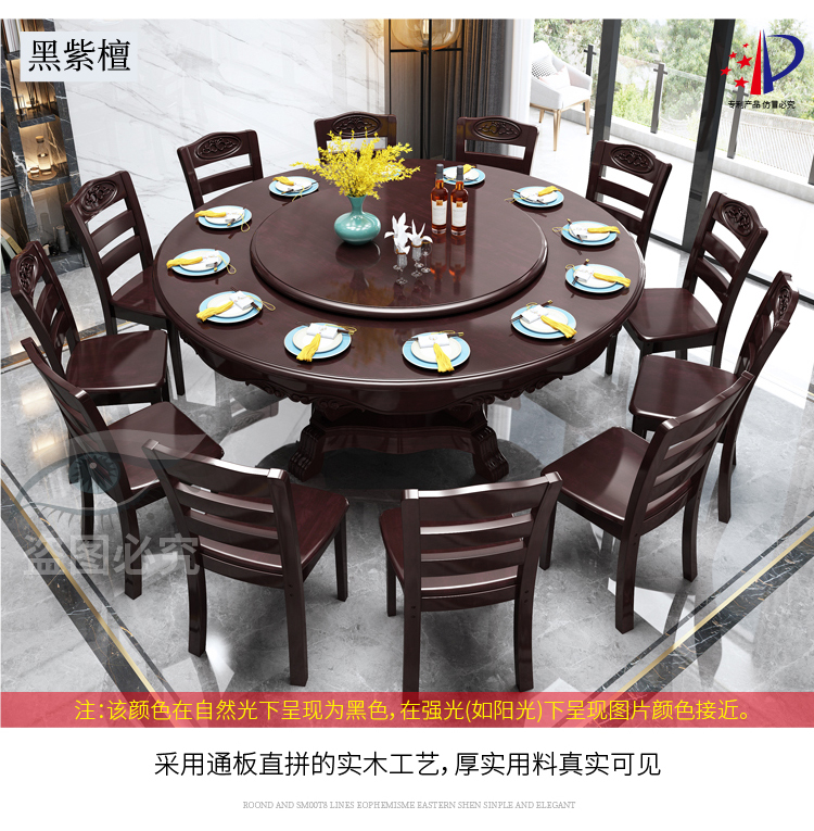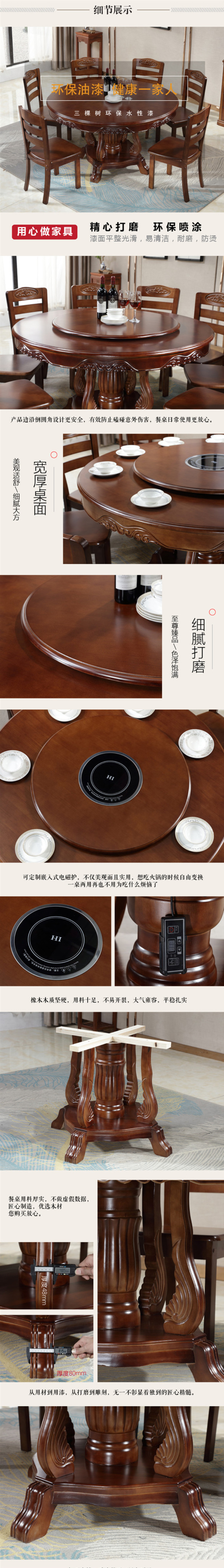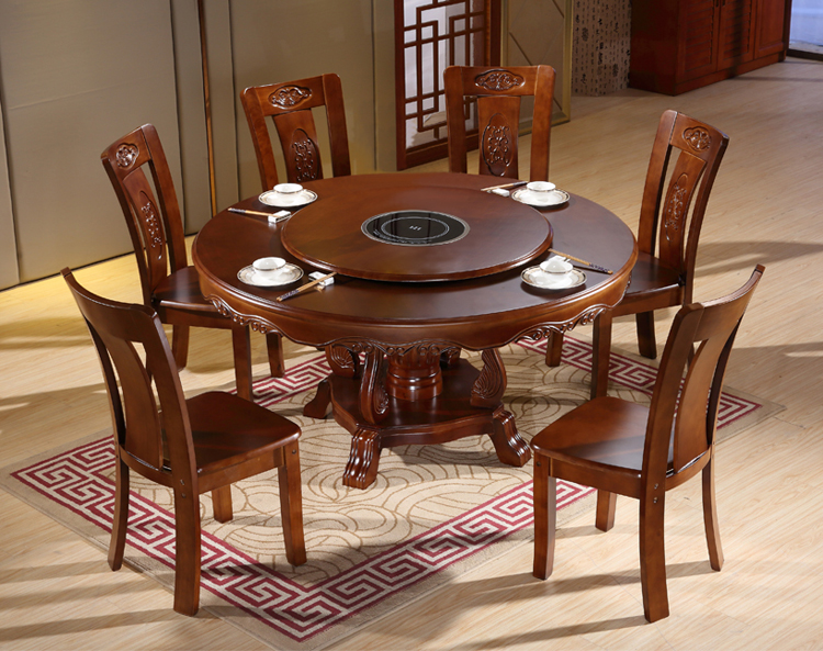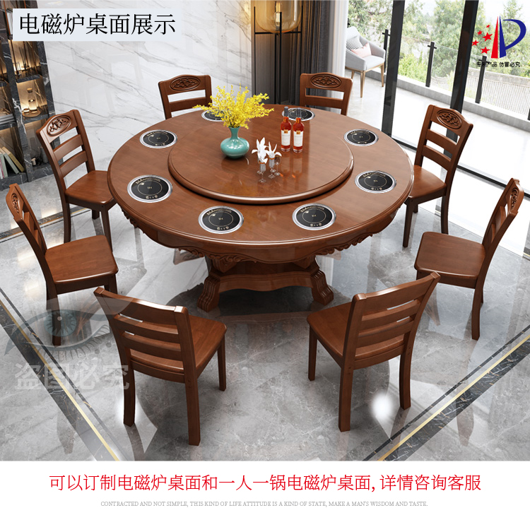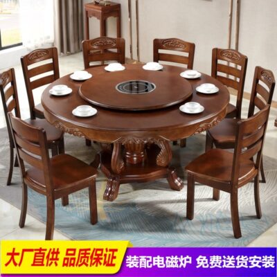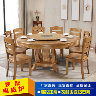 Bàn ăn gia đình bằng gỗ nguyên khối có bàn xoay cảm ứng bàn ăn tròn và ghế kết hợp bàn sân vườn gỗ sồi Bàn lẩu Trung Quốc