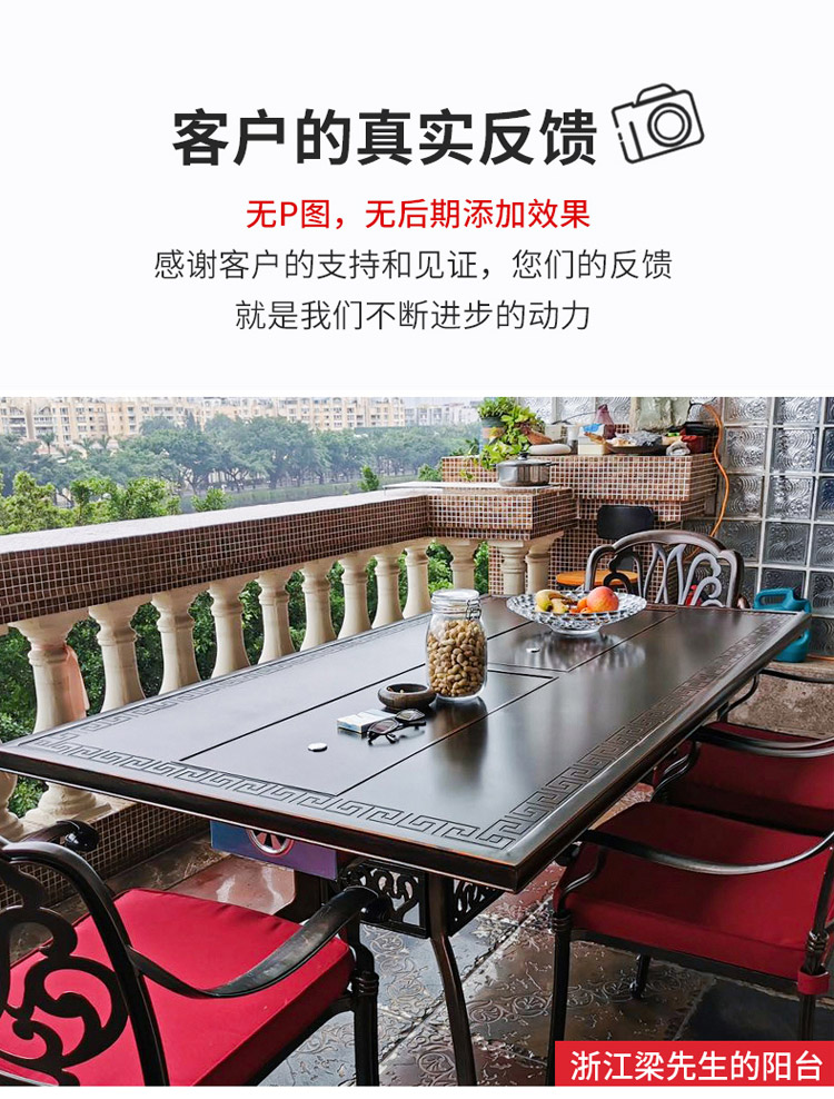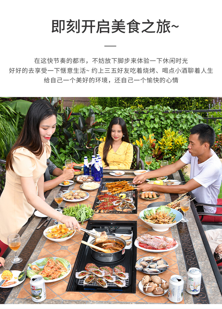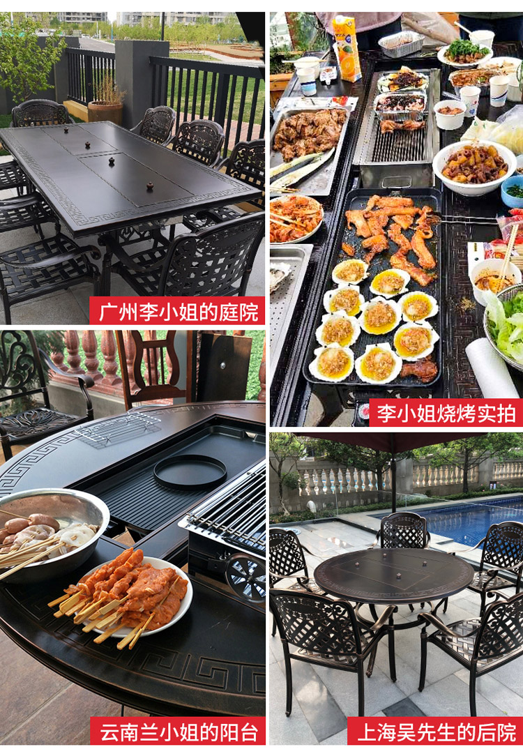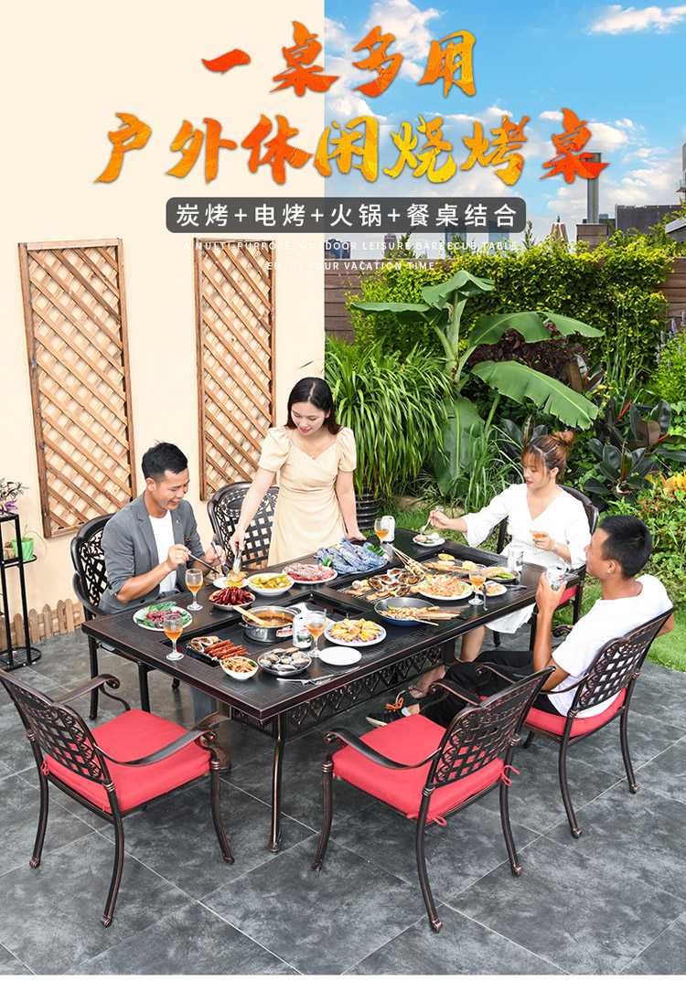 Bàn ăn gia đình lò nướng điện thương mại Đồ nội thất sân vườn ngoài trời Hàn Quốc giải trí Sân trong nhôm đúc bàn ghế nướng ngoài trời được thiết kế để tạo điểm nhấn cho khu vực sân vườn, ban công hoặc không gian ngoài trời.