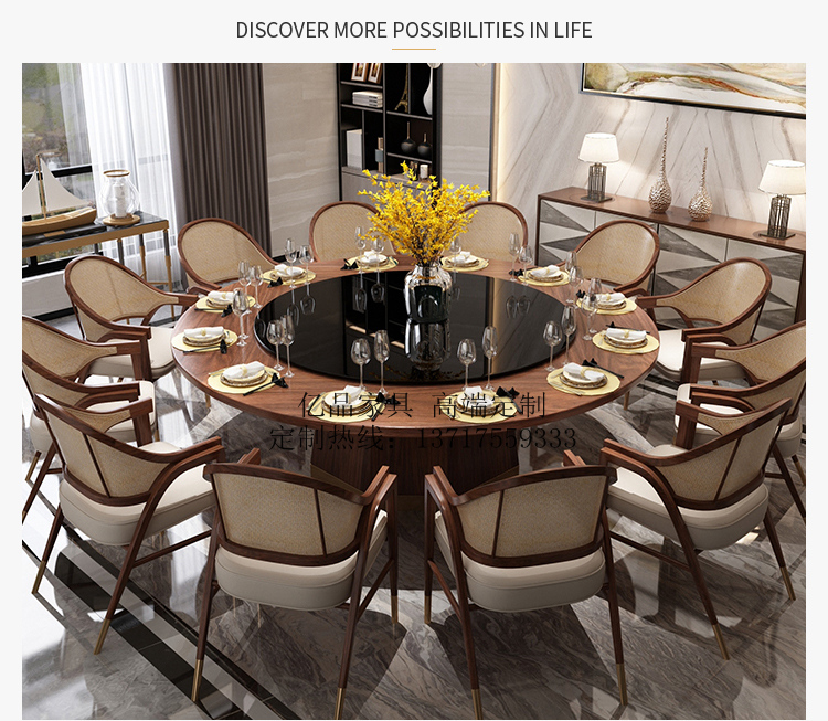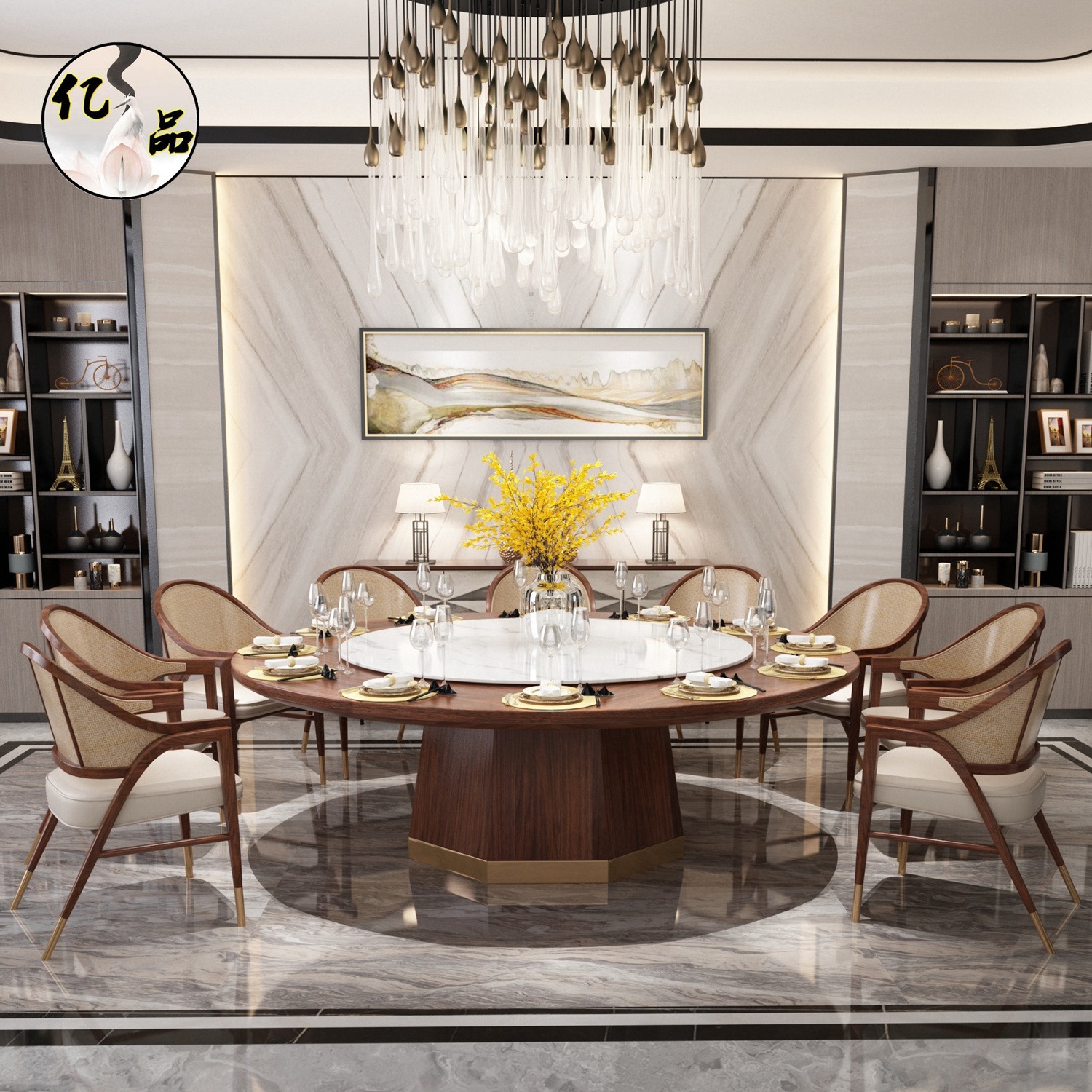 Bàn ăn gỗ chắc chắn phong cách Trung Quốc mới và ghế khách sạn điện bàn tròn lớn 20 người sang trọng đơn giản câu lạc bộ bàn lẩu bán buôn – Bàn ăn nhập khẩu cao cấp
