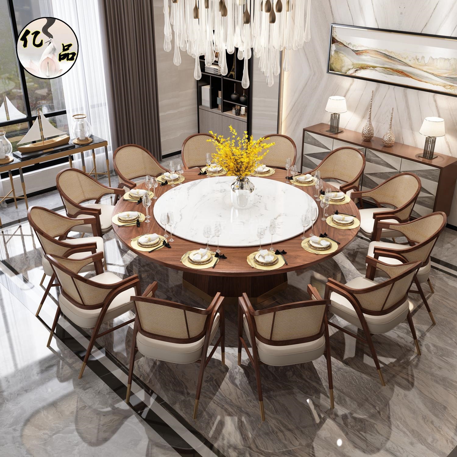 Bàn ăn gỗ chắc chắn phong cách Trung Quốc mới và ghế khách sạn điện bàn tròn lớn 20 người sang trọng đơn giản câu lạc bộ bàn lẩu bán buôn