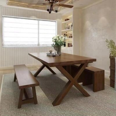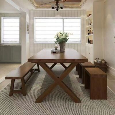 Bàn ăn gỗ đặc Mỹ và ghế kết hợp bàn ăn khúc gỗ cổ điển nhà căn hộ nhỏ bàn ăn nhà hàng bàn hình chữ nhật
