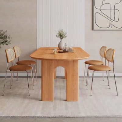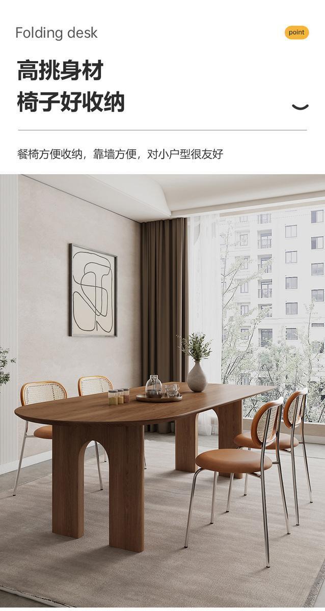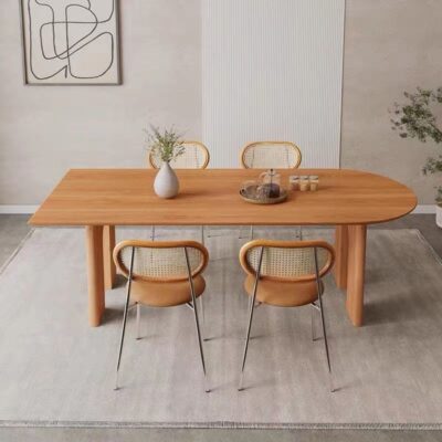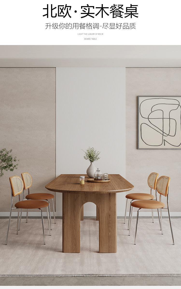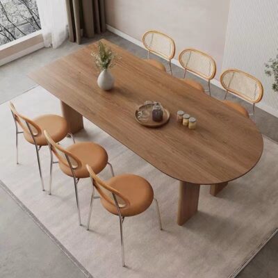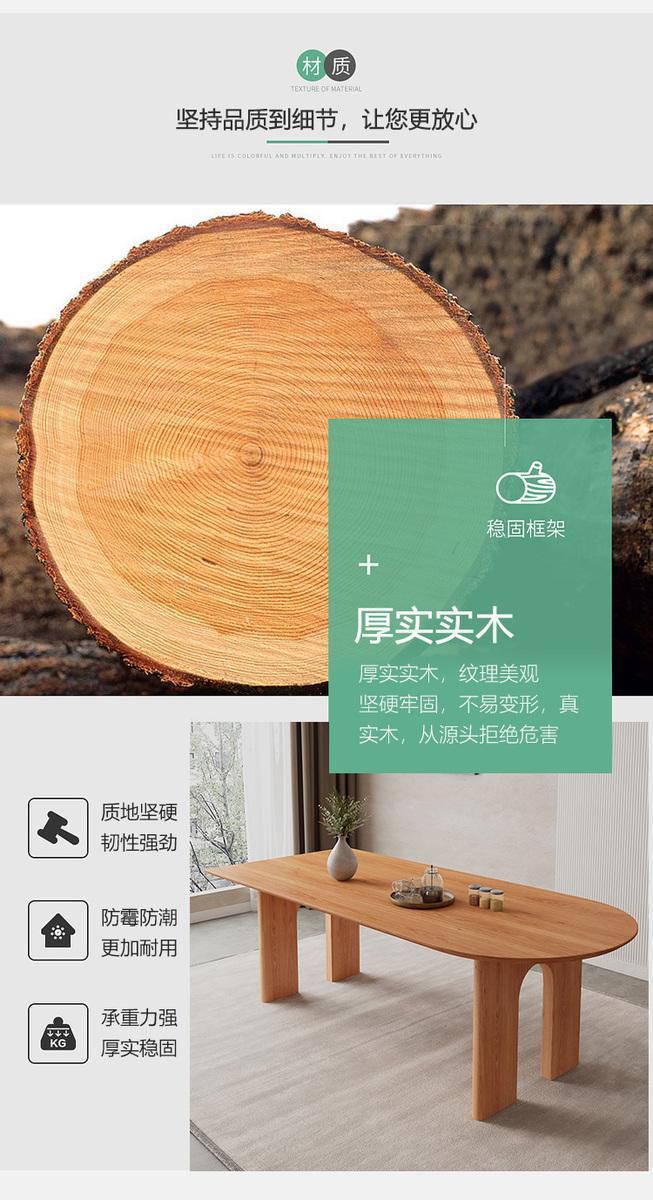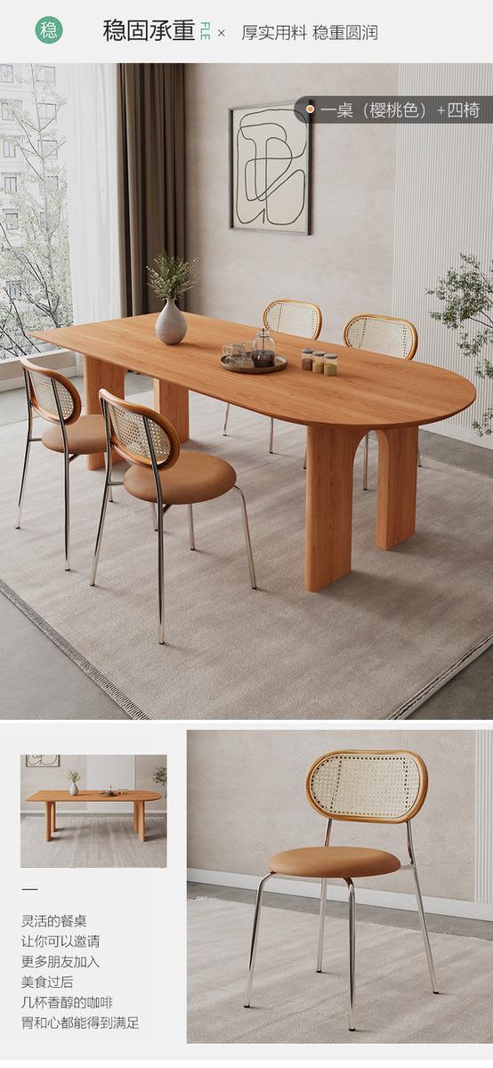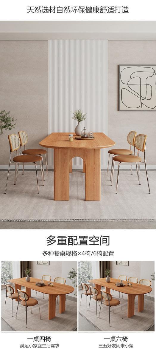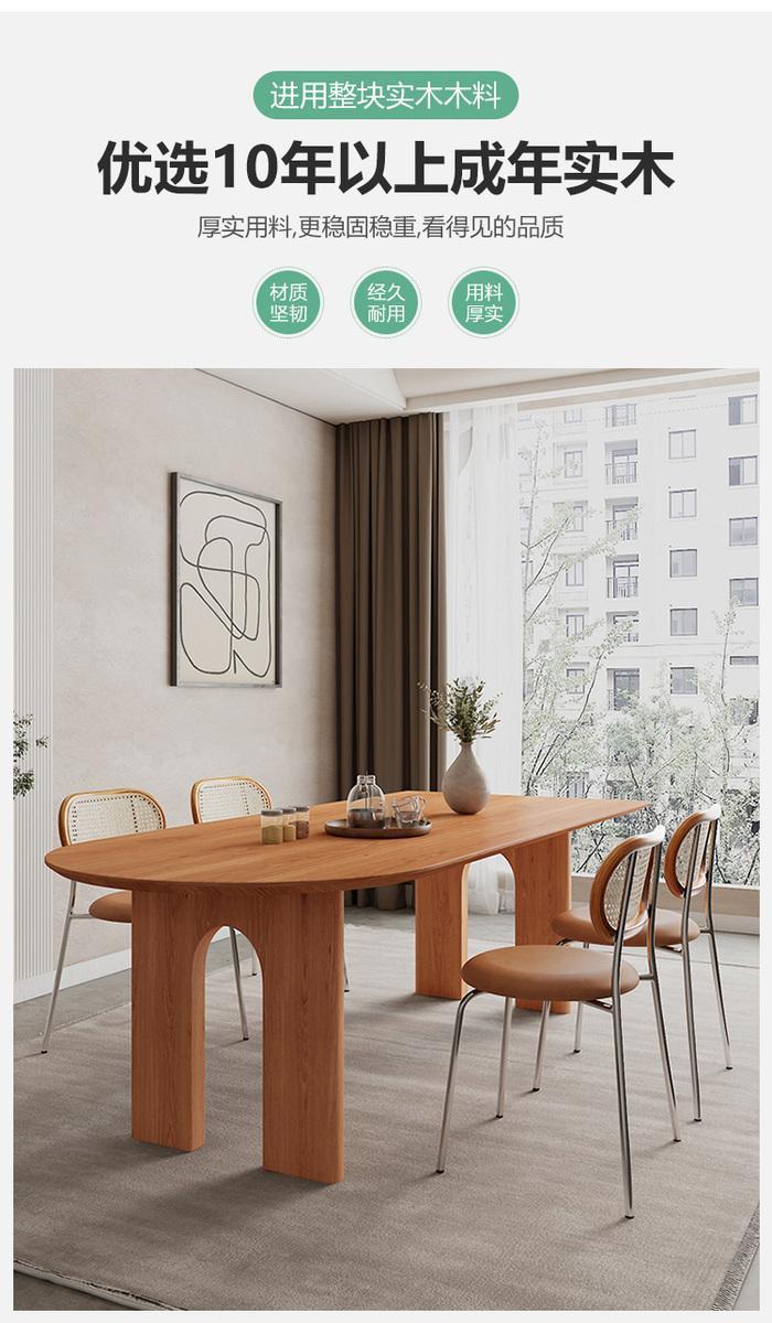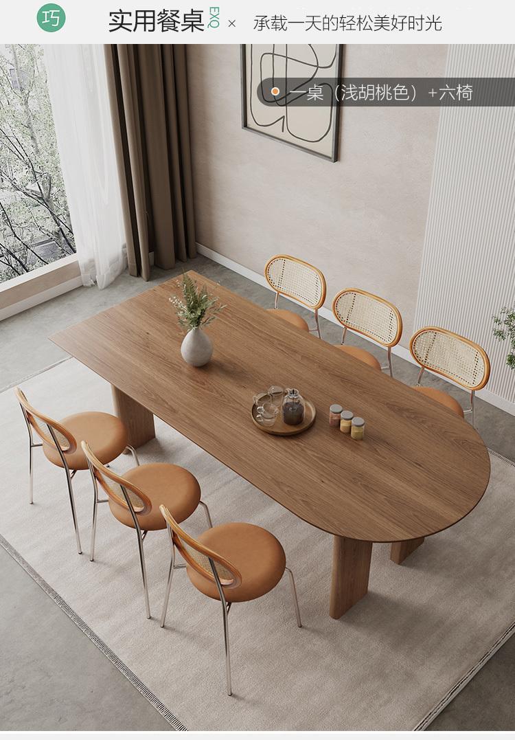 Bàn ăn gỗ đặc phong cách wabi-sabi Bắc Âu kết hợp bàn ghế văn phòng hiện đại Bàn Qiadan đơn giản tại nhà bàn ăn bán đảo hình bầu dục