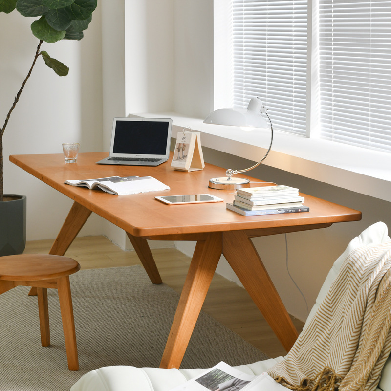 Bàn ăn gỗ đặc phong cách wabi sabi quán cà phê bàn ghế nhiều người kết hợp phòng khách bàn ăn gỗ tần bì hình chữ nhật
