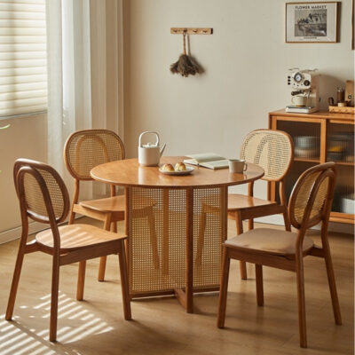 Bàn ăn gỗ đặc thời trung cổ và ghế kết hợp hộ gia đình kiểu Nhật Bản bàn tròn mây cỡ nhỏ Bàn ăn tối giản hiện đại Bắc Âu