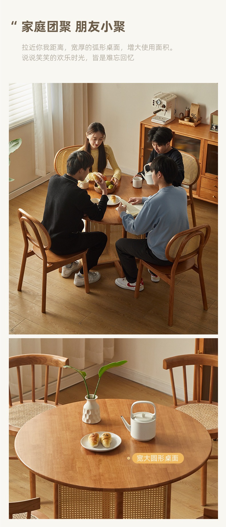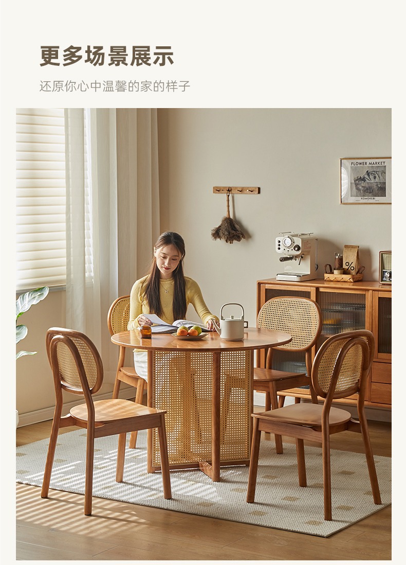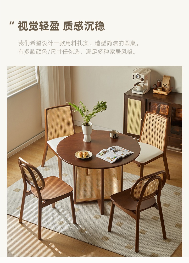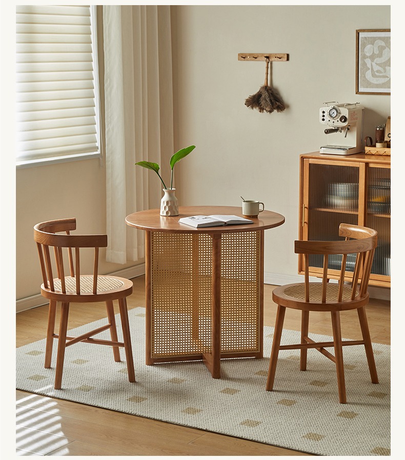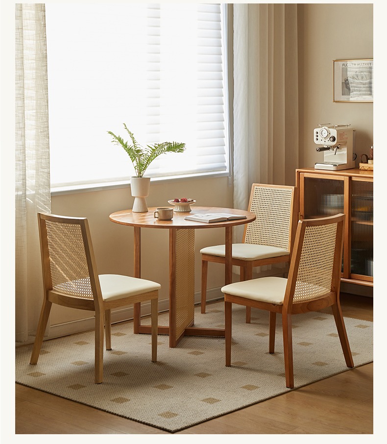 Bàn ăn gỗ đặc thời trung cổ và ghế kết hợp hộ gia đình kiểu Nhật Bản bàn tròn mây cỡ nhỏ Bàn ăn tối giản hiện đại Bắc Âu