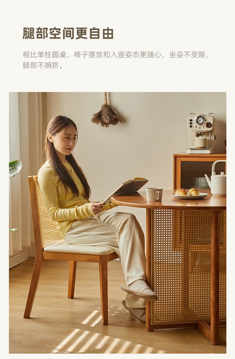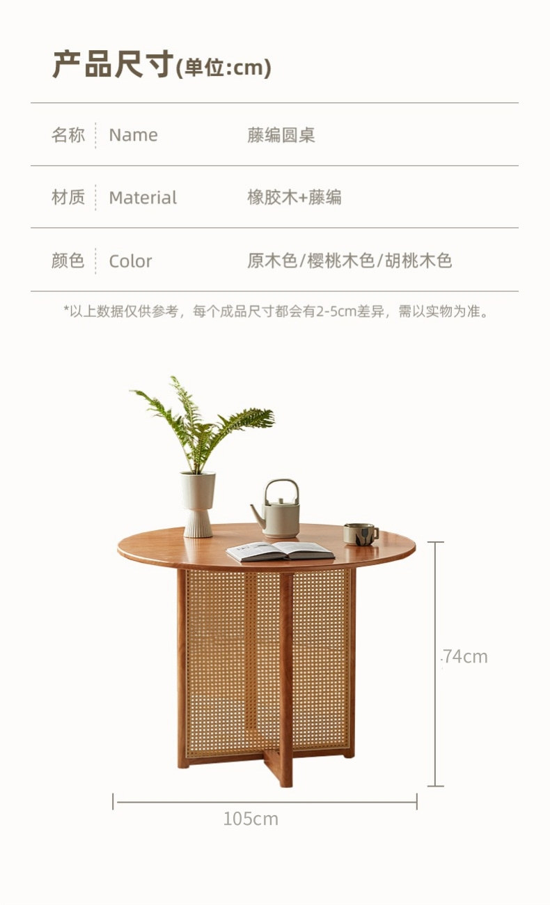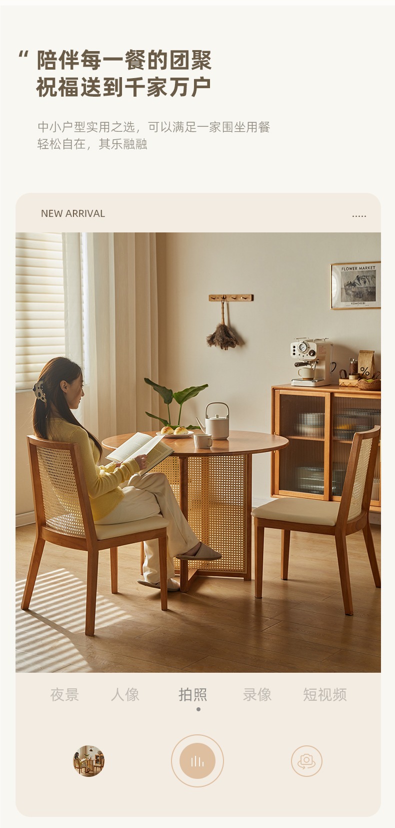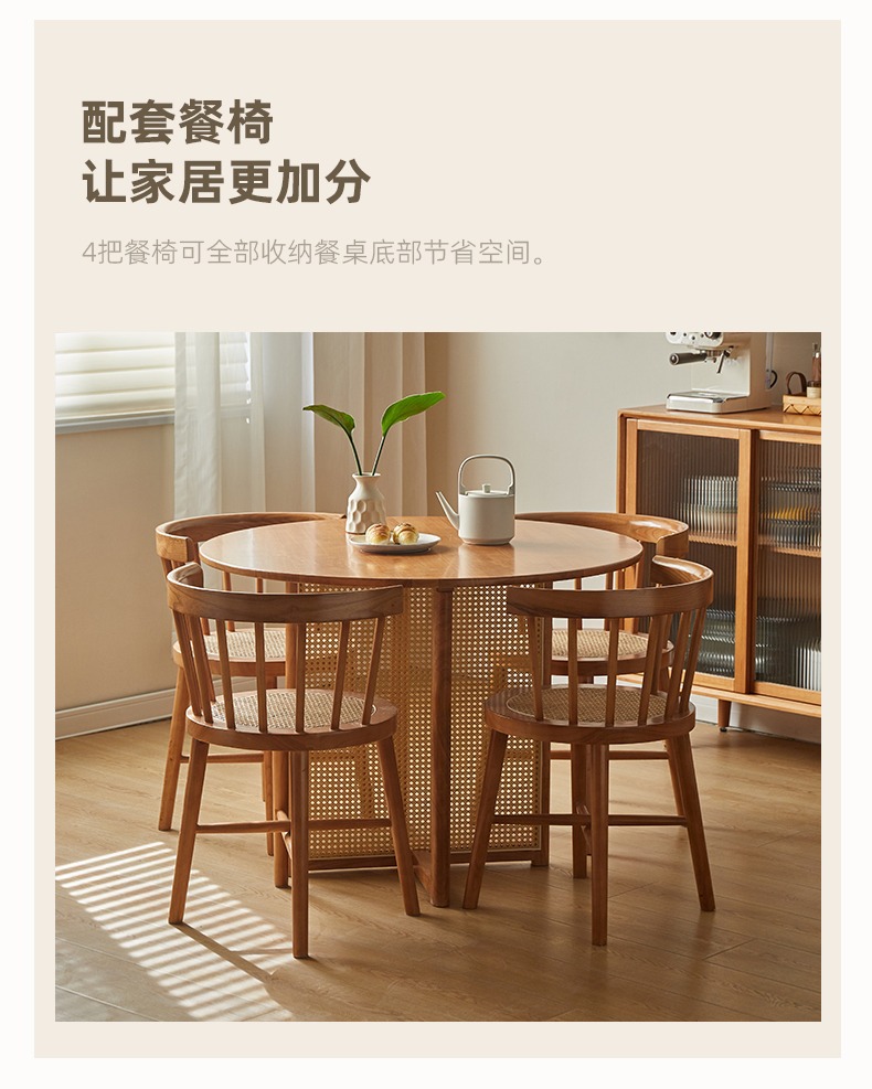 Bàn ăn gỗ đặc thời trung cổ và ghế kết hợp hộ gia đình kiểu Nhật Bản bàn tròn mây cỡ nhỏ Bàn ăn tối giản hiện đại Bắc Âu