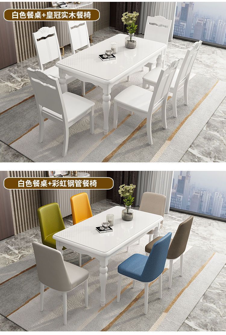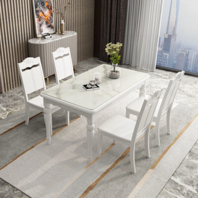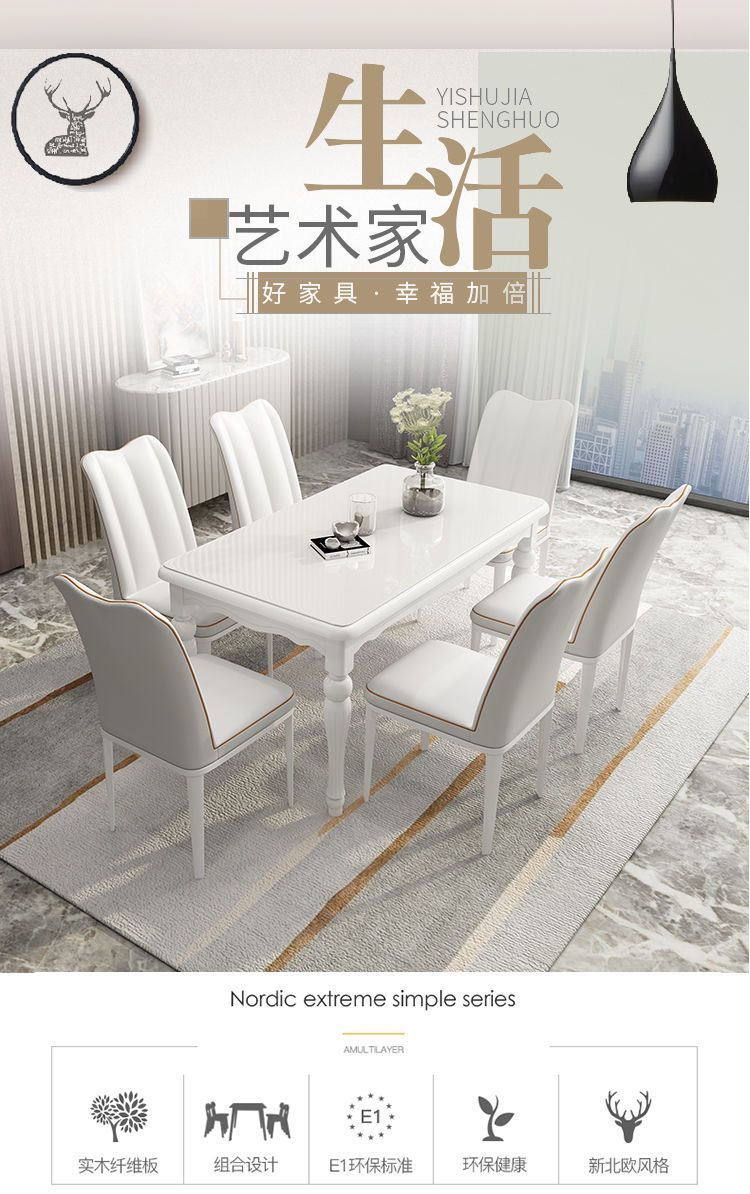 Bàn ăn gỗ đặc và ghế kết hợp căn hộ nhỏ tối giản hiện đại Bàn ăn Bắc Âu hình chữ nhật bàn ăn gia đình bằng kính cường lực