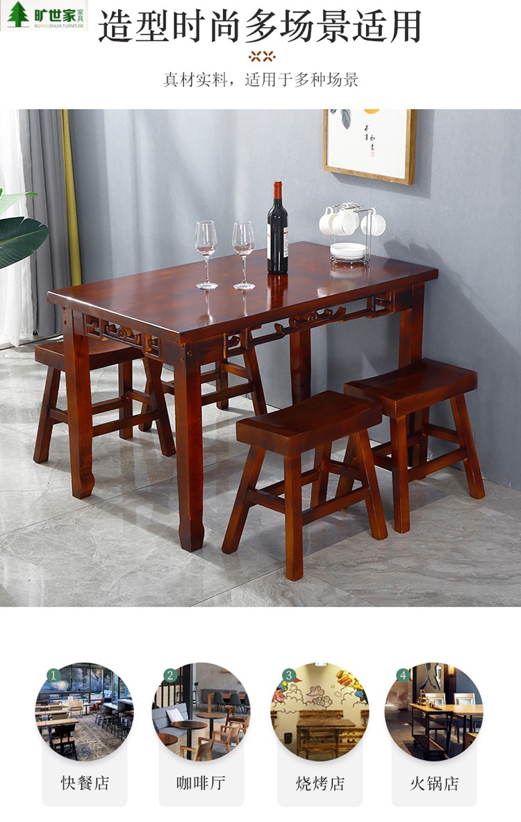 Bàn ăn gỗ đặc và ghế nhà hàng mì ăn sáng trang trại cacbon – BGCF-523 – Mã sản phẩm BGCF-523. Bàn ăn gỗ đặc và ghế kết hợp nhà hàng mì ăn sáng trang trại cacbon hóa cổ chạm khắc khách sạn khách sạn thức ăn nhanh bàn dài