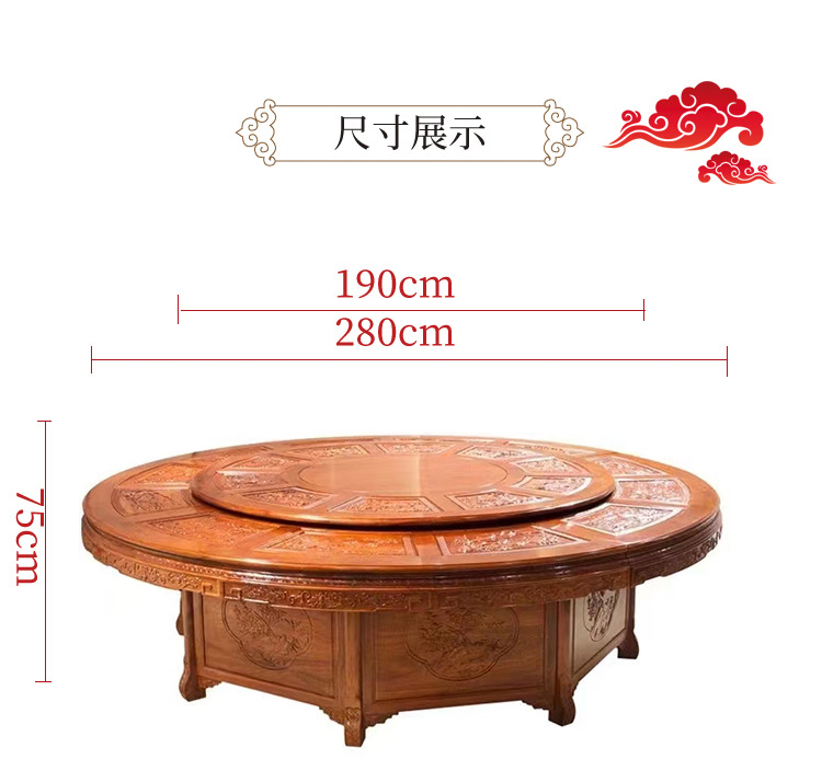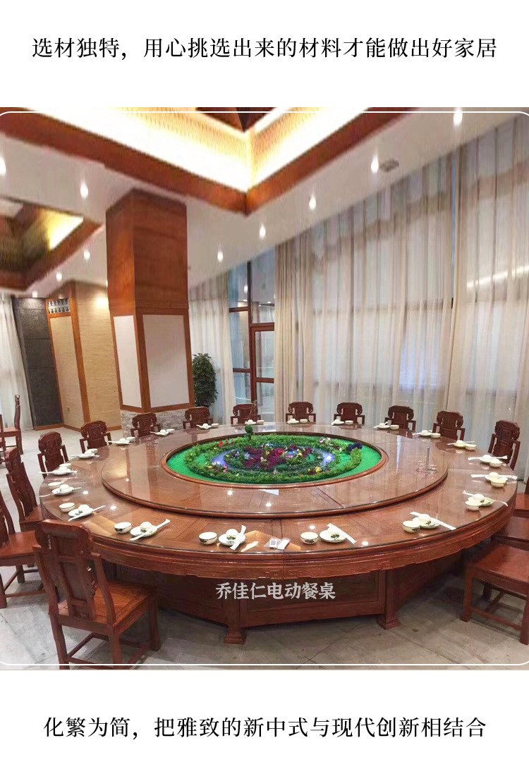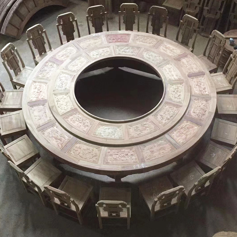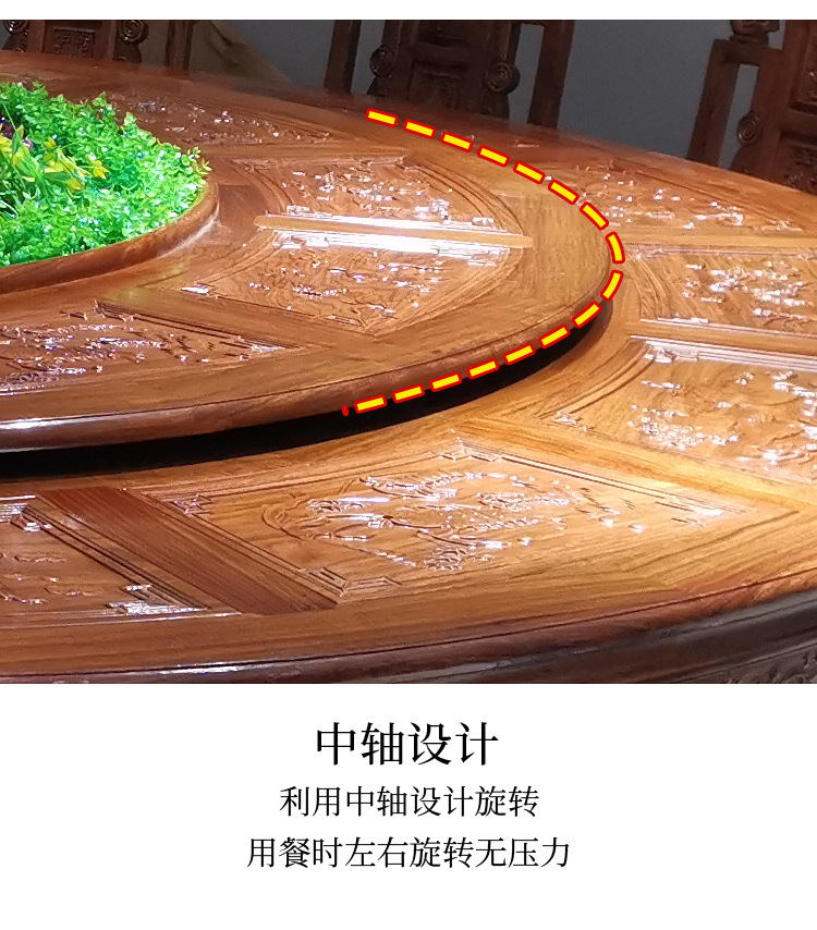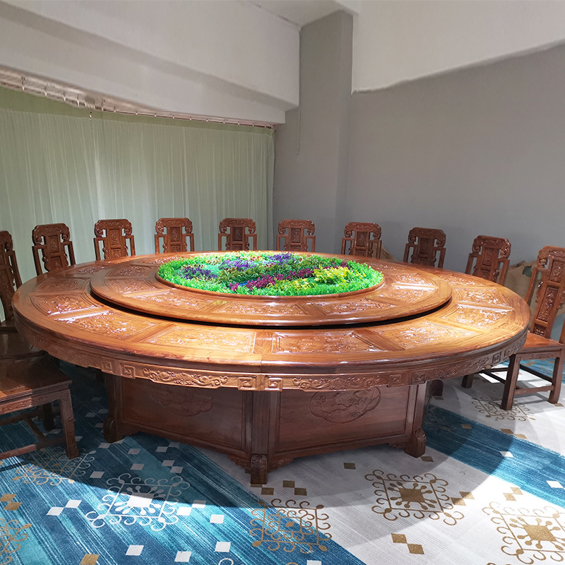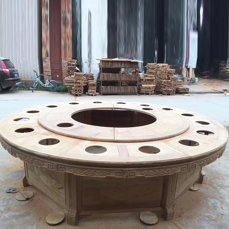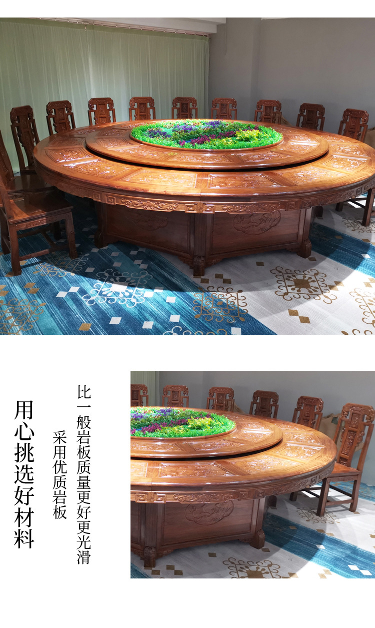 Bàn ăn gỗ gụ, bàn ăn xoay tự động gỗ cẩm lai nhím, bàn tròn lớn, câu lạc bộ khách sạn, bếp từ thương mại, bàn tròn lẩu gỗ nguyên khối_x000D_
