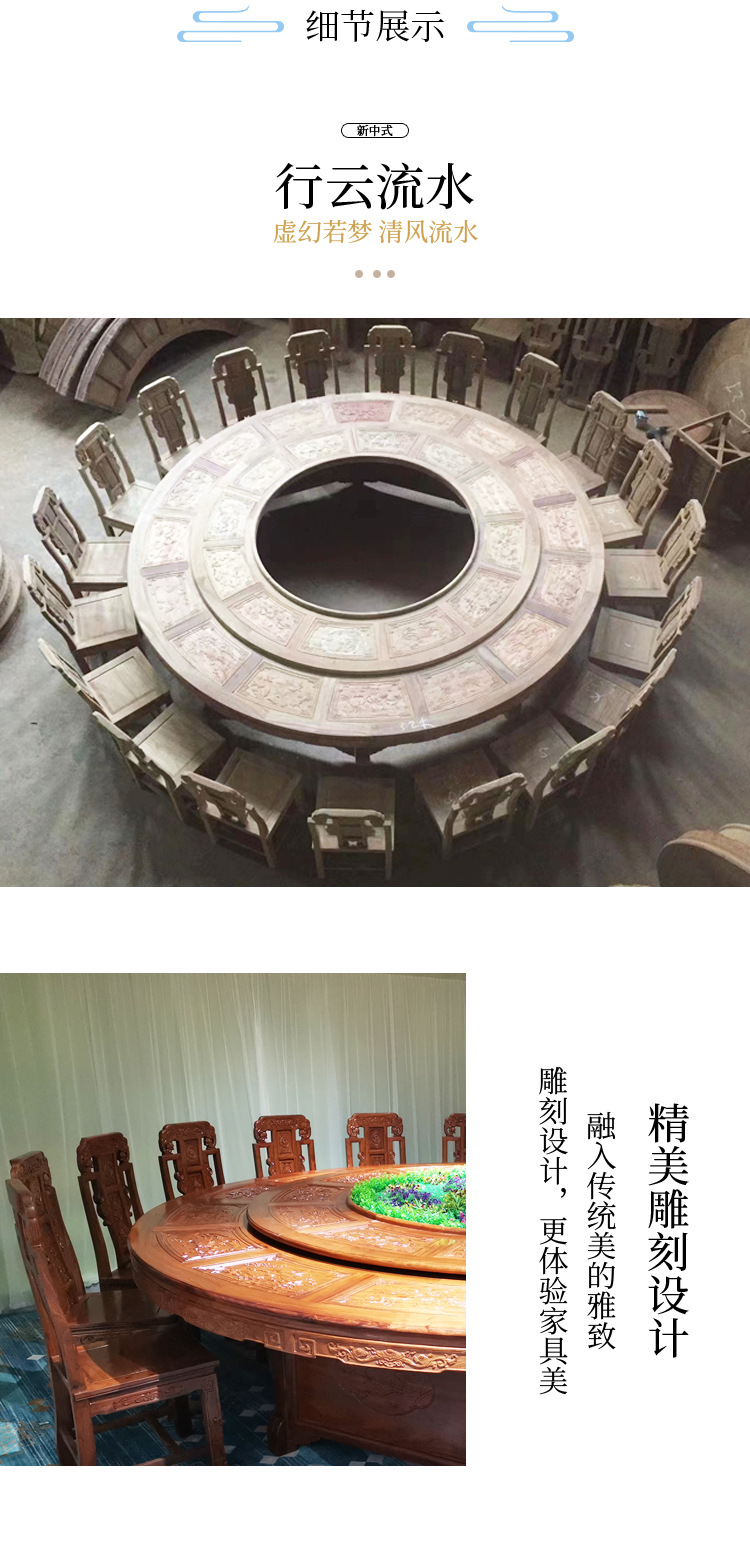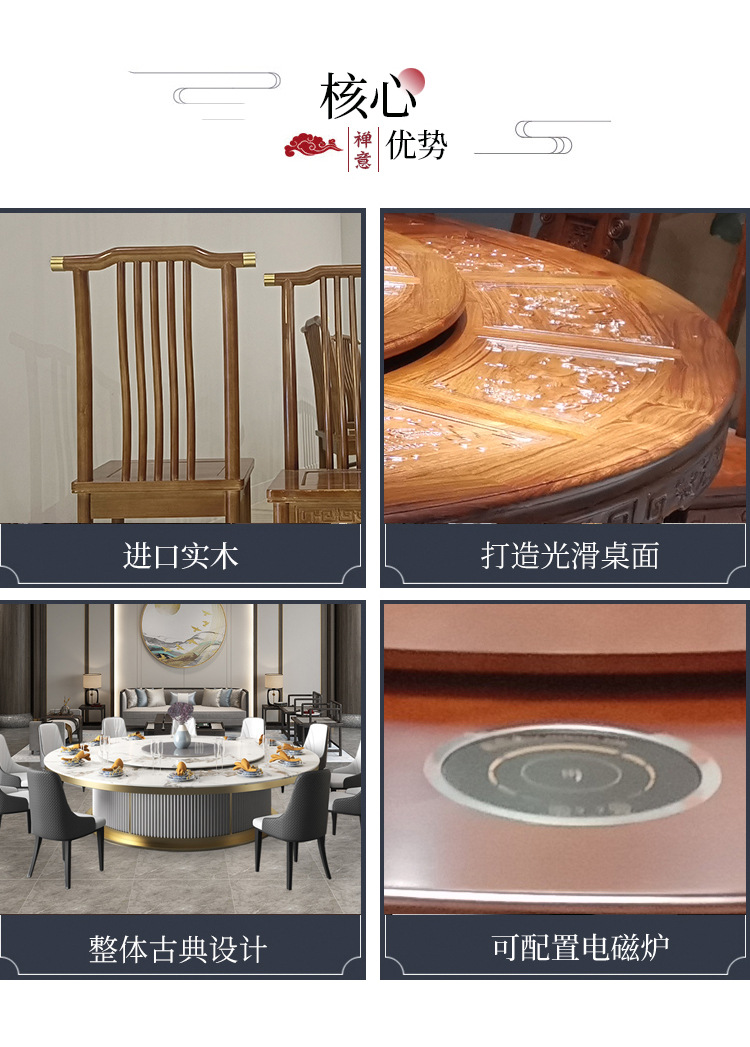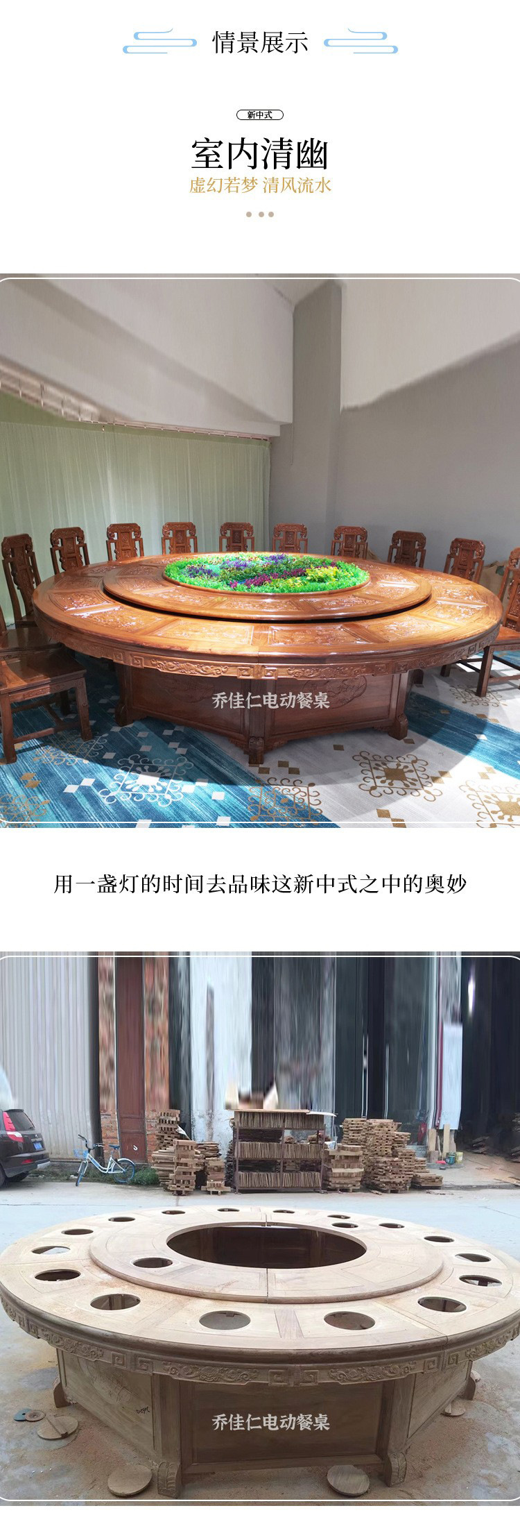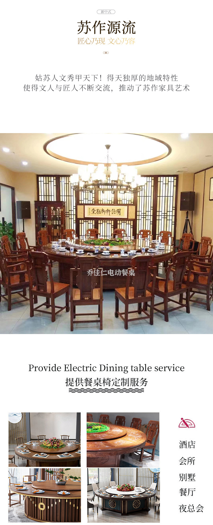 Bàn ăn gỗ gụ, bàn ăn xoay tự động gỗ cẩm lai nhím, bàn tròn lớn, câu lạc bộ khách sạn, bếp từ thương mại, bàn tròn lẩu gỗ nguyên khối_x000D_