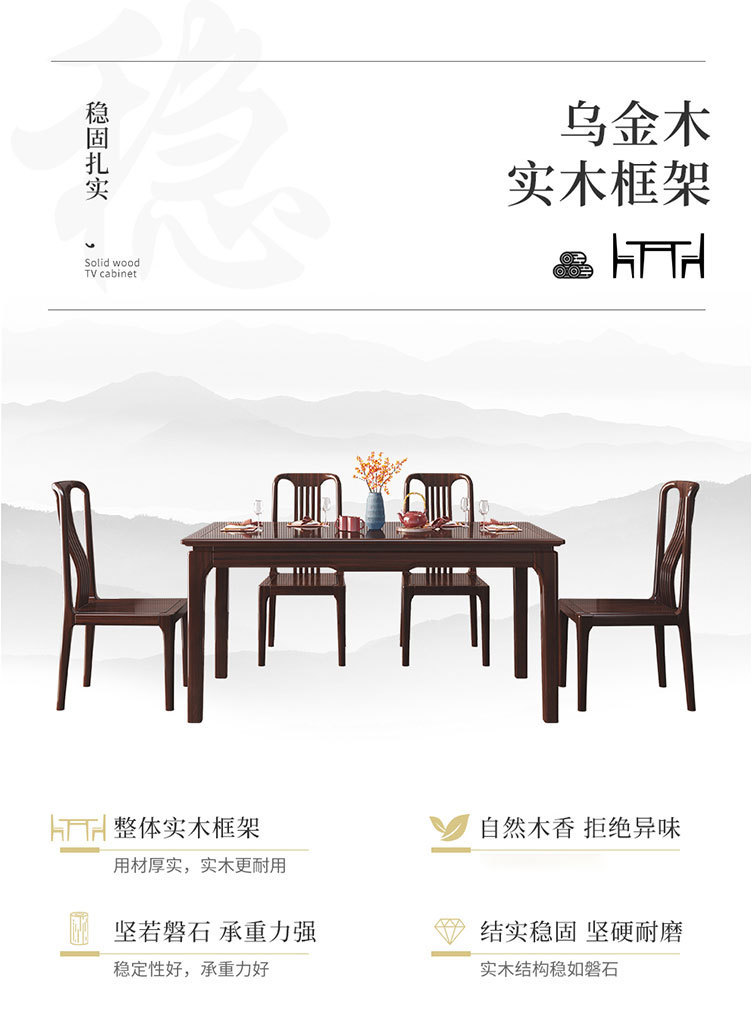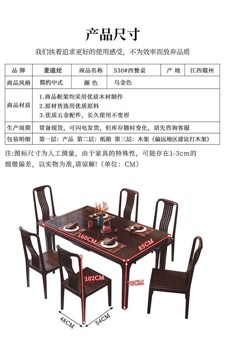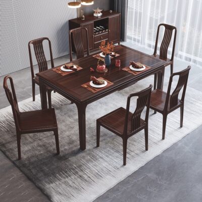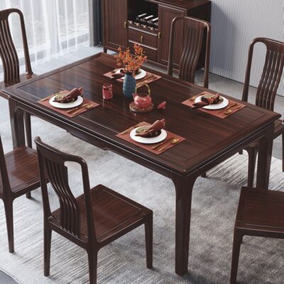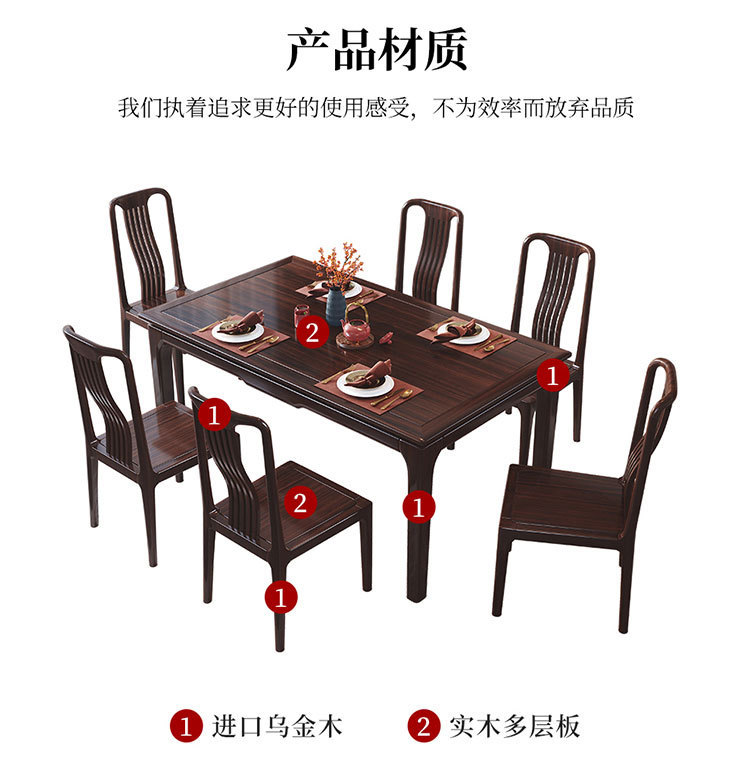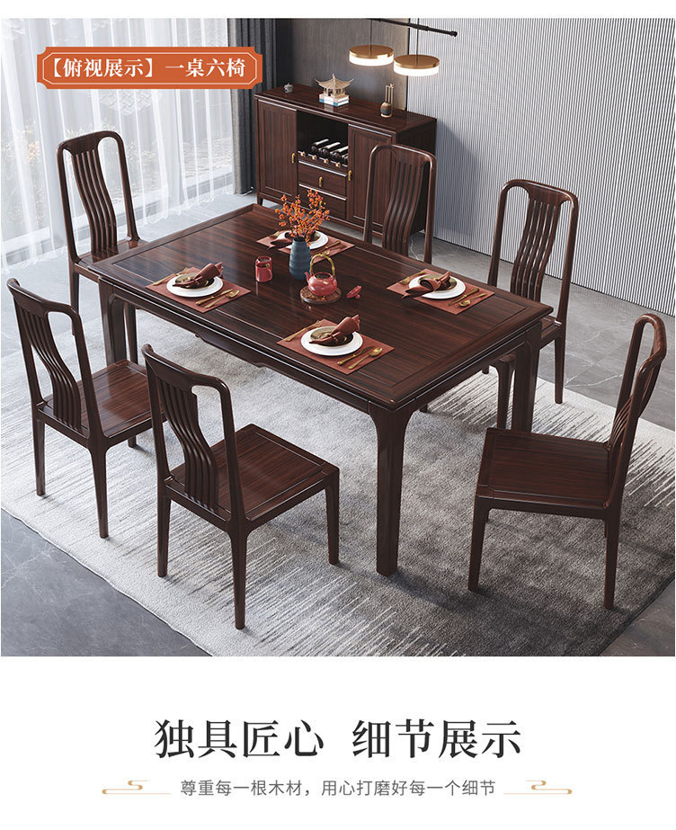 Bàn ăn gỗ mun kiểu Trung Quốc mới 1,6m hình chữ nhật và ghế cho 4 người và 6 người gia đình bàn ăn tối giản hiện đại bằng gỗ nguyên khối – Bàn ăn nhập khẩu cao cấp