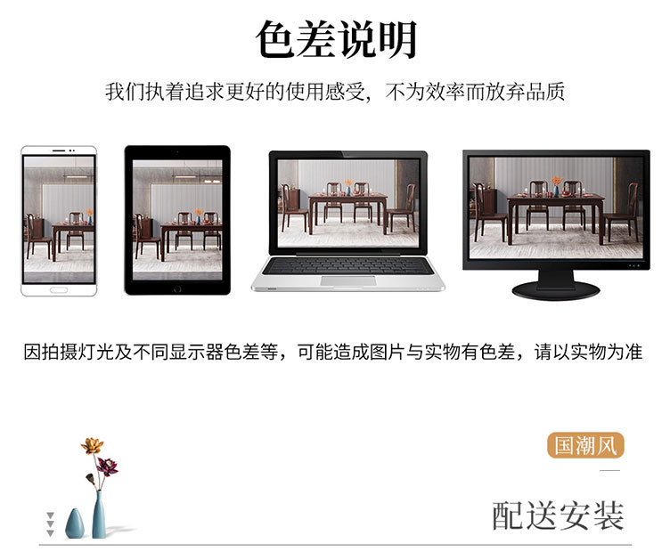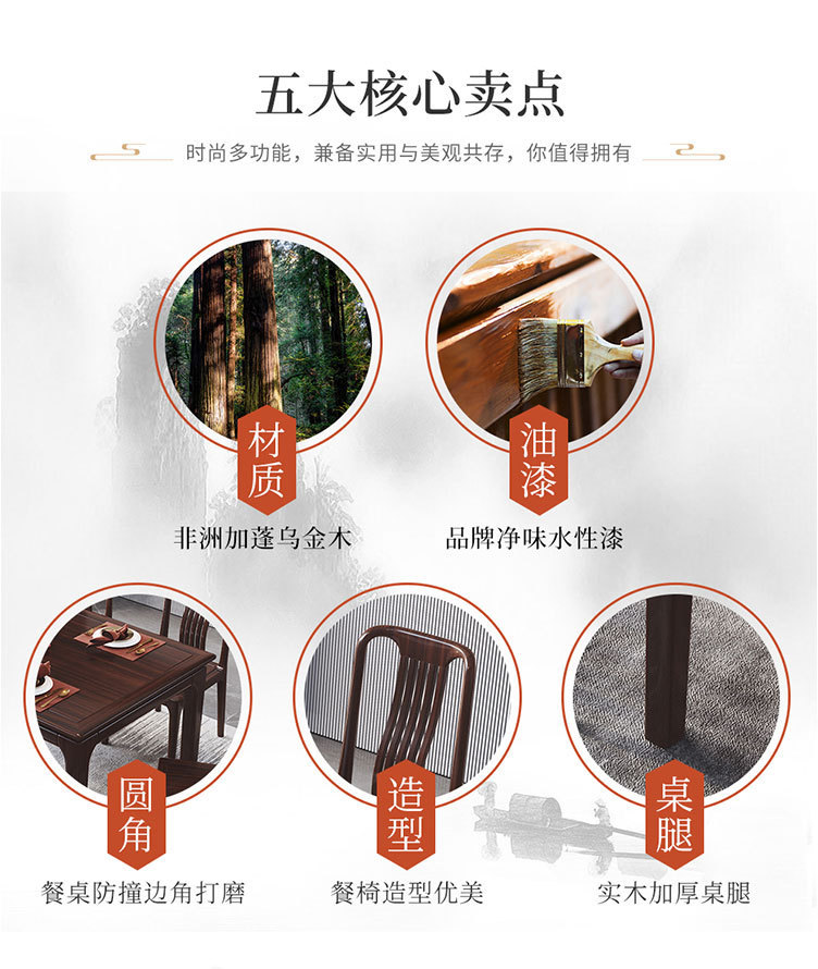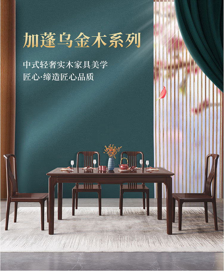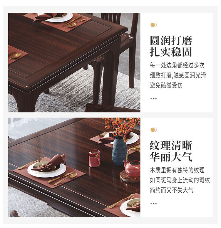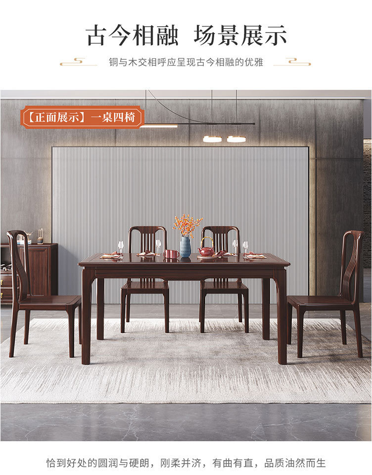 Bàn ăn gỗ mun kiểu Trung Quốc mới 1,6m hình chữ nhật và ghế cho 4 người và 6 người gia đình bàn ăn tối giản hiện đại bằng gỗ nguyên khối – Bàn ăn nhập khẩu cao cấp