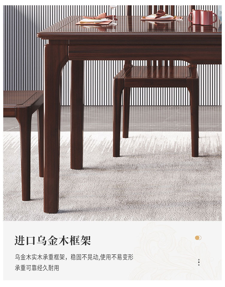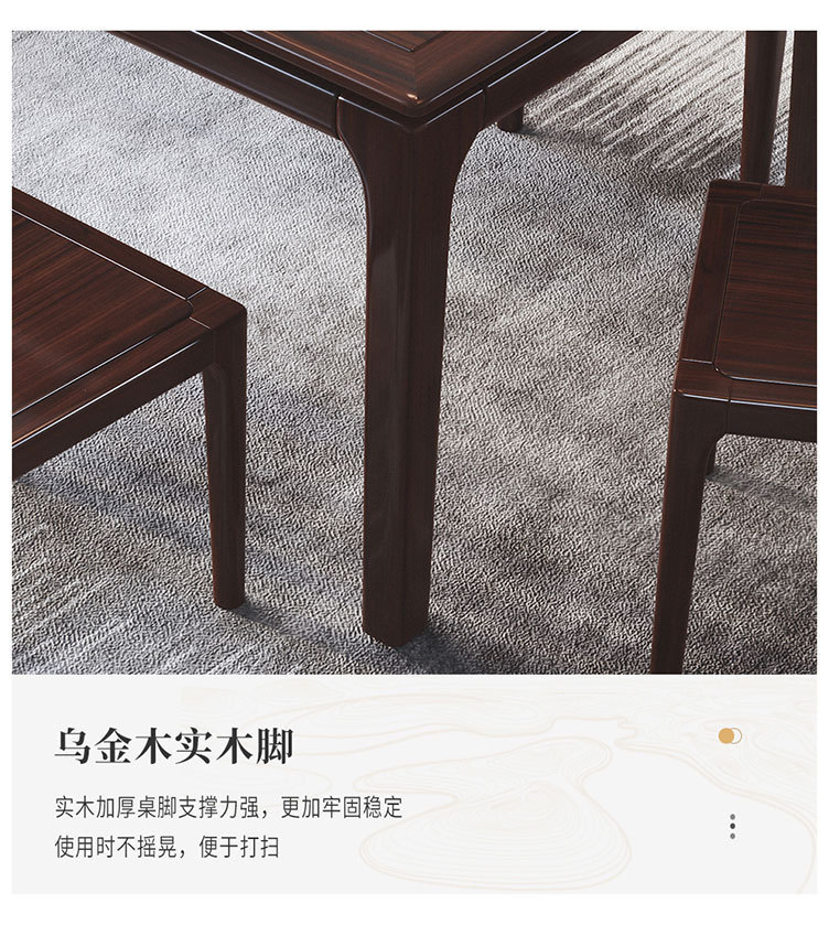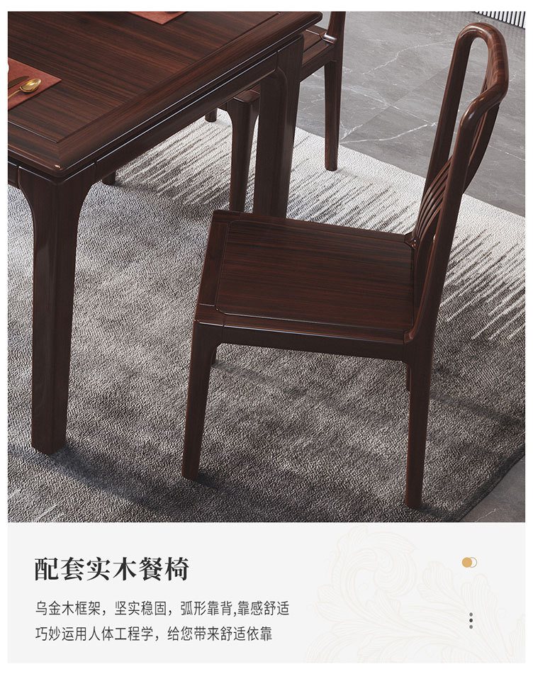 Bàn ăn gỗ mun kiểu Trung Quốc mới 1,6m hình chữ nhật và ghế cho 4 người và 6 người gia đình bàn ăn tối giản hiện đại bằng gỗ nguyên khối là sản phẩm nổi bật trong dòng bàn ăn nhập khẩu, thiết kế hiện đại và sang trọng, phù hợp với nhiều không gian nội thất cao cấp.