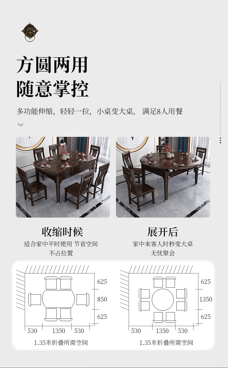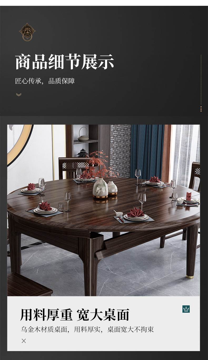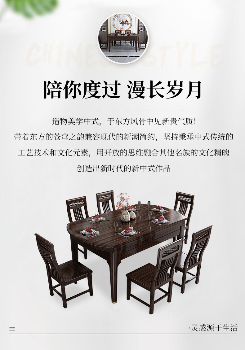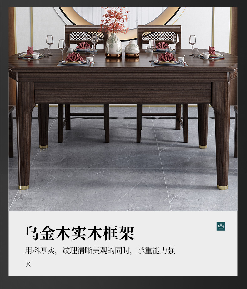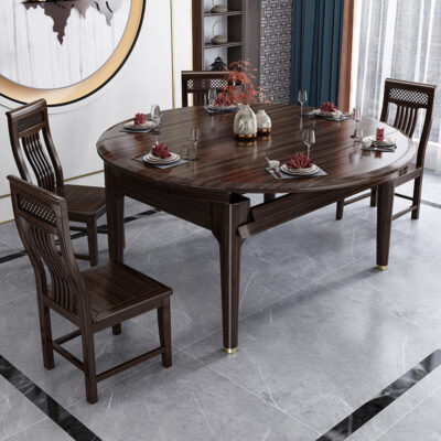 Bàn ăn gỗ mun phong cách Trung Quốc mới và ghế kết hợp kính gấp bàn ăn nhà tròn bàn ăn biến bàn tròn – Bàn ăn nhập khẩu cao cấp