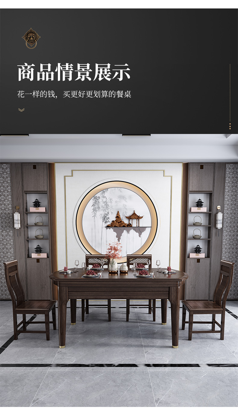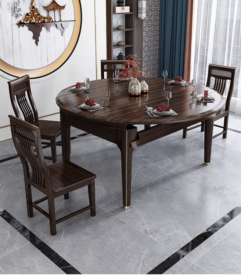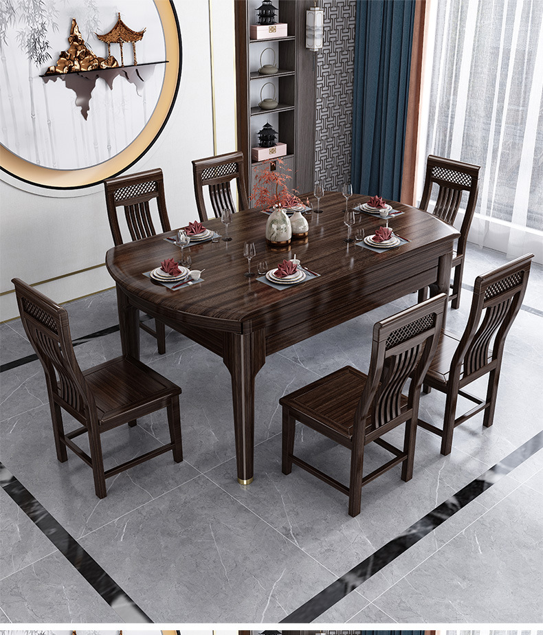 Bàn ăn gỗ mun phong cách Trung Quốc mới và ghế kết hợp kính gấp bàn ăn nhà tròn bàn ăn biến bàn tròn – Bàn ăn nhập khẩu cao cấp