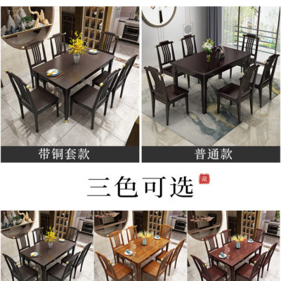 Bàn ăn gỗ nguyên khối bàn hình chữ nhật nhà mới phong cách Trung Quốc căn hộ nhỏ bàn ăn phương tây tất cả bàn ăn gỗ nguyên khối và ghế bàn ăn kết hợp