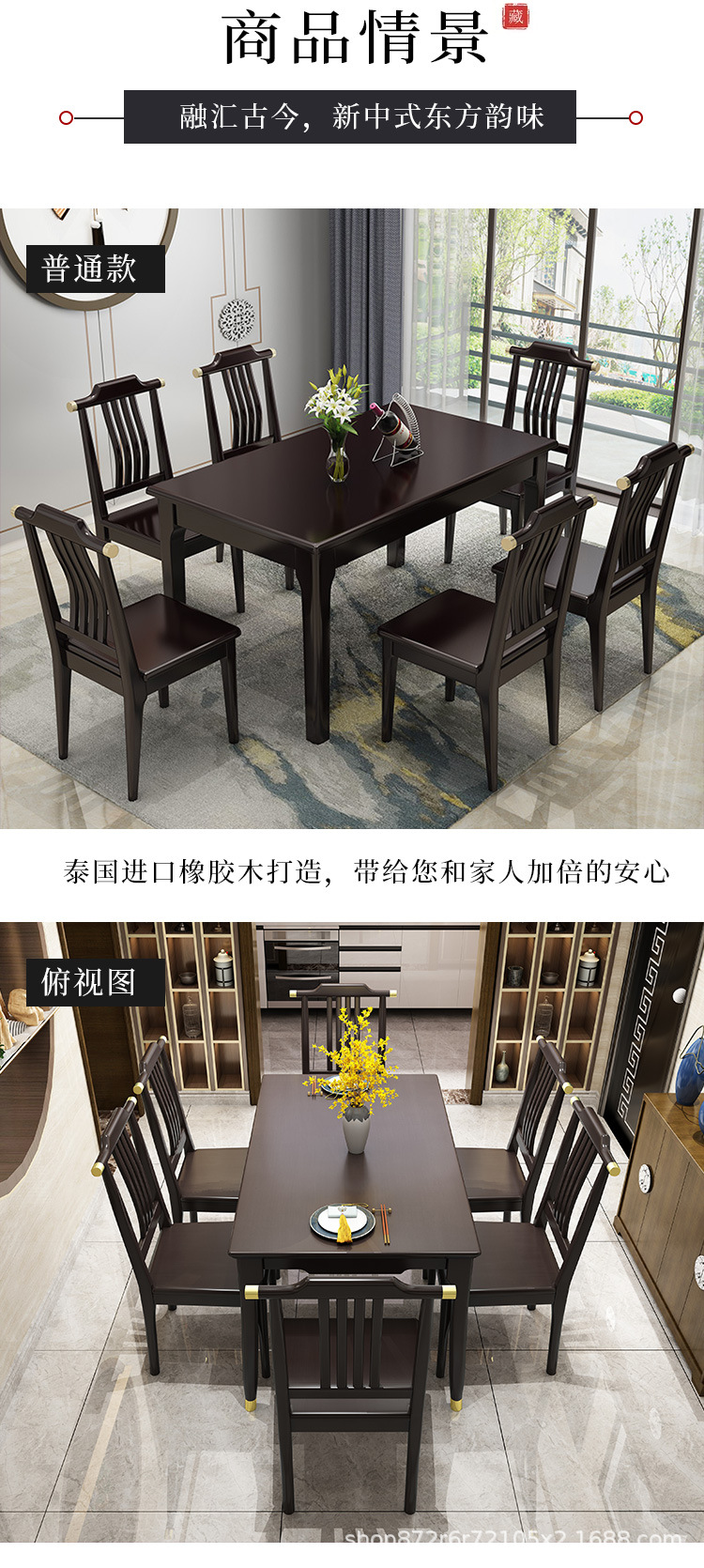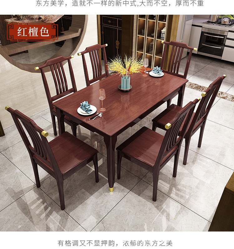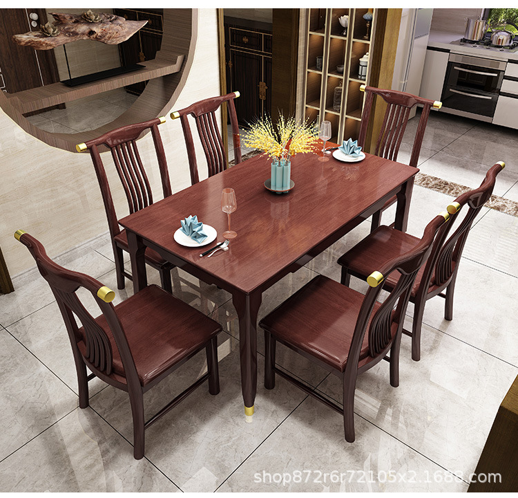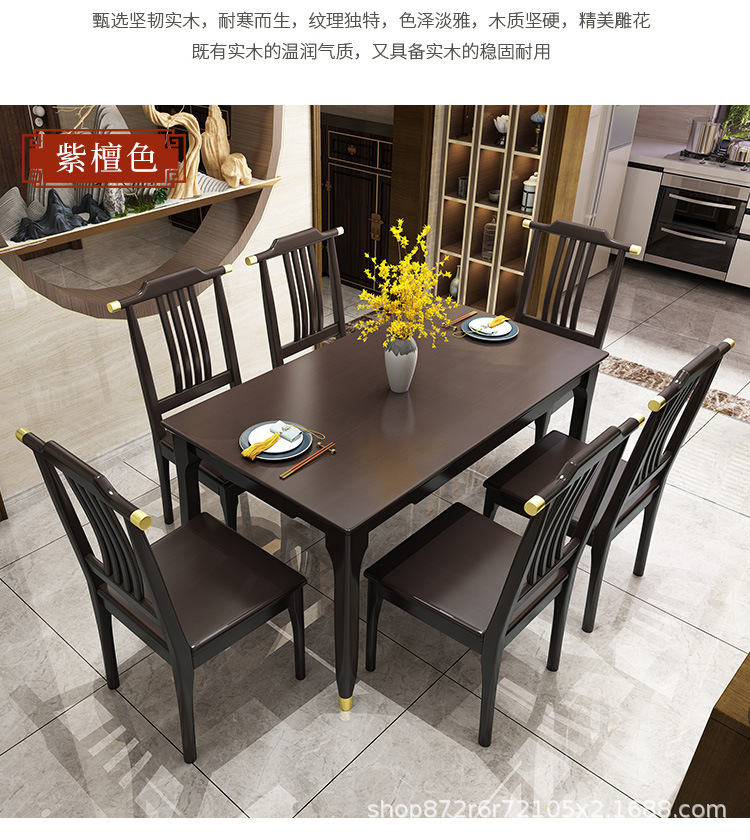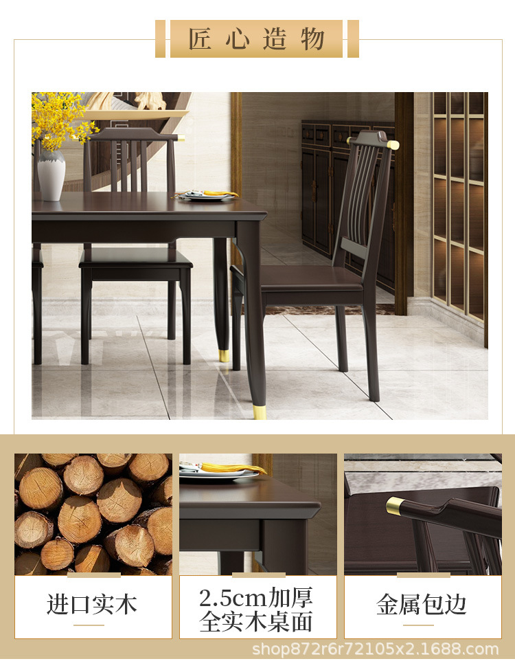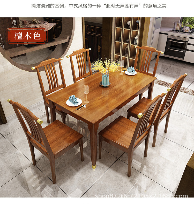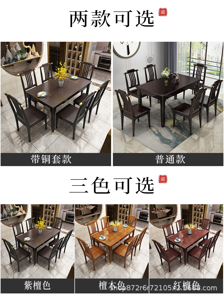 Bàn ăn gỗ nguyên khối bàn hình chữ nhật nhà mới phong cách Trung Quốc căn hộ nhỏ bàn ăn phương tây tất cả bàn ăn gỗ nguyên khối và ghế bàn ăn kết hợp