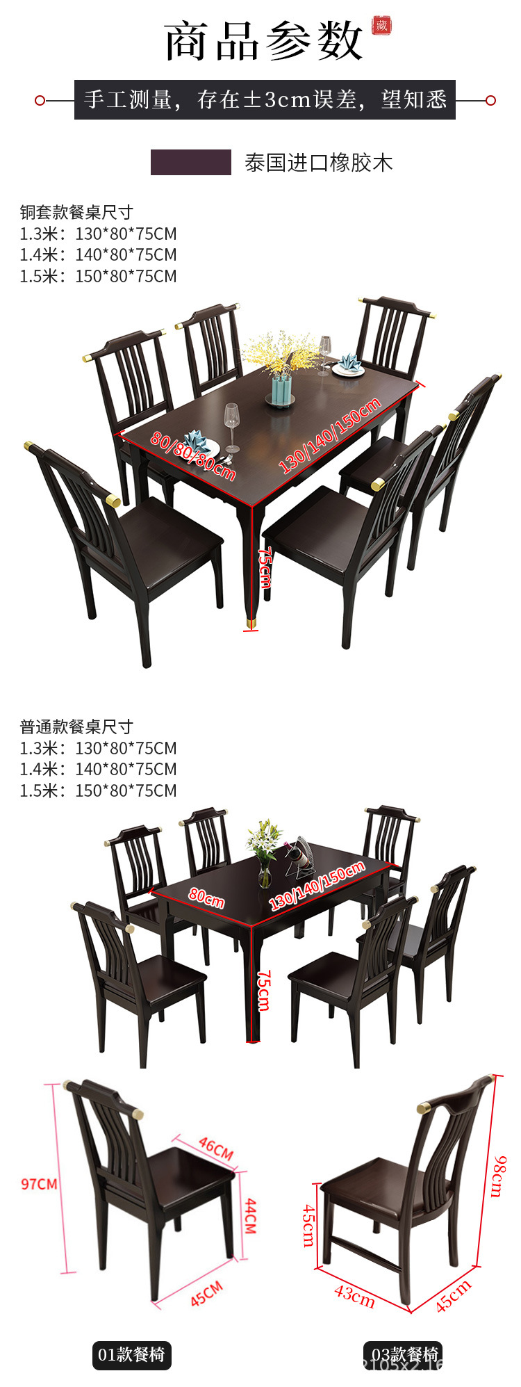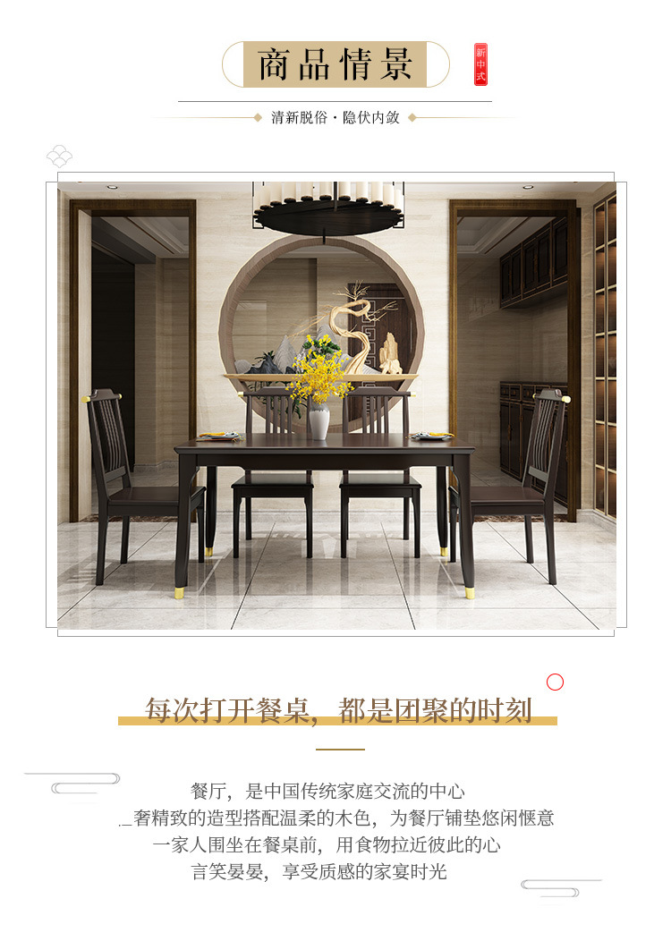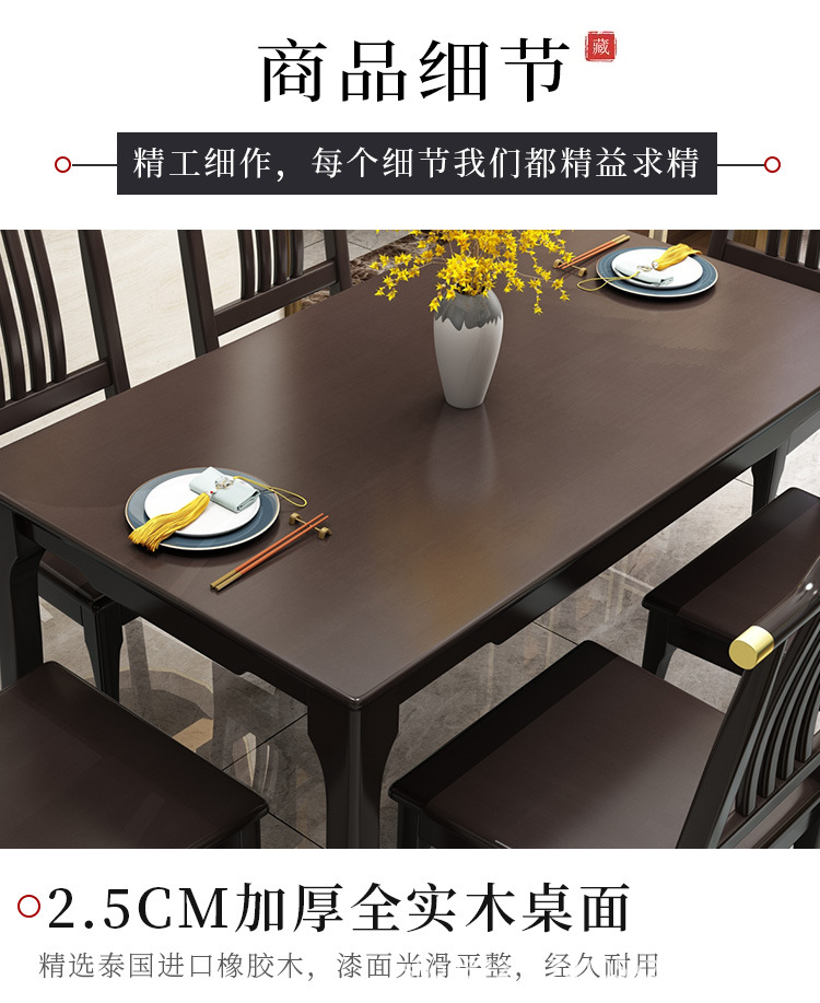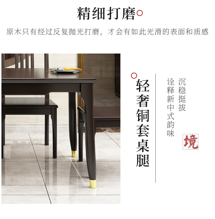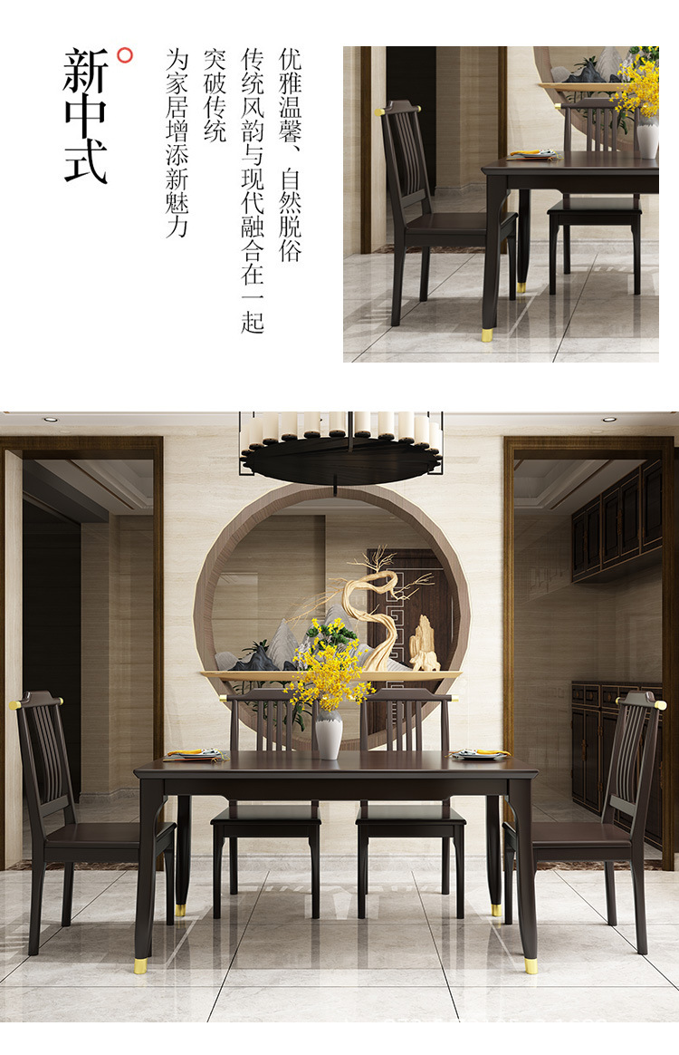 Bàn ăn gỗ nguyên khối bàn hình chữ nhật nhà mới phong cách Trung Quốc căn hộ nhỏ bàn ăn phương tây tất cả bàn ăn gỗ nguyên khối và ghế bàn ăn kết hợp