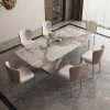 Bàn ăn gỗ nguyên khối hình chữ nhật hiện đại tối giản căn hộ nhỏ Bắc Âu 6 người bàn ăn kết hợp đá phiến tro đen – Bàn ăn nhập khẩu cao cấp