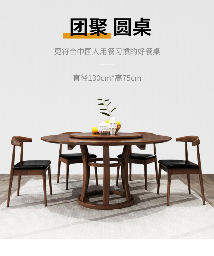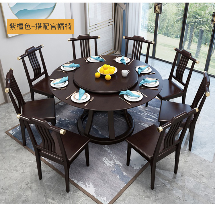 Bàn ăn gỗ nguyên khối kiểu Bắc Âu, bàn tròn 1,8 mét có bàn xoay, bàn lớn đơn giản kiểu Trung Quốc cho 8/10 khách sạn – Bàn ăn nhập khẩu cao cấp