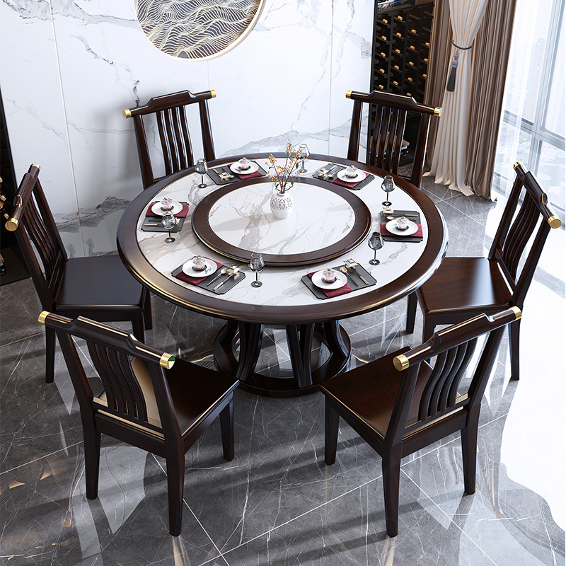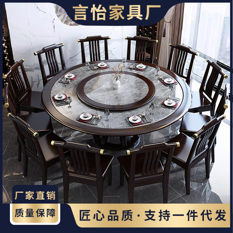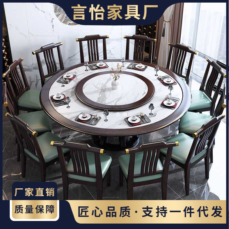 Bàn ăn gỗ nguyên khối mới của Trung Quốc Bàn tròn bàn xoay tiếp tân Bàn ăn tròn Bàn ghế đá phiến khách sạn Bàn tròn lớn 1,8m