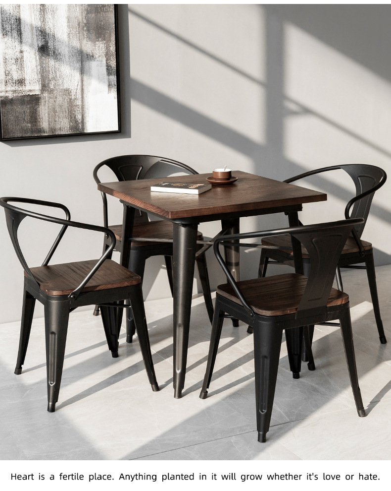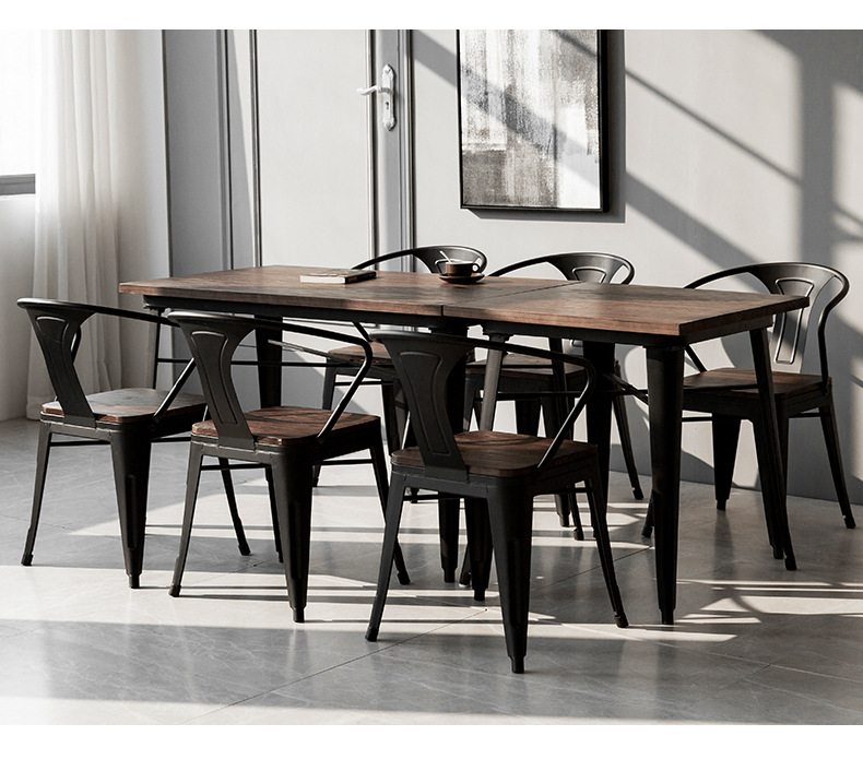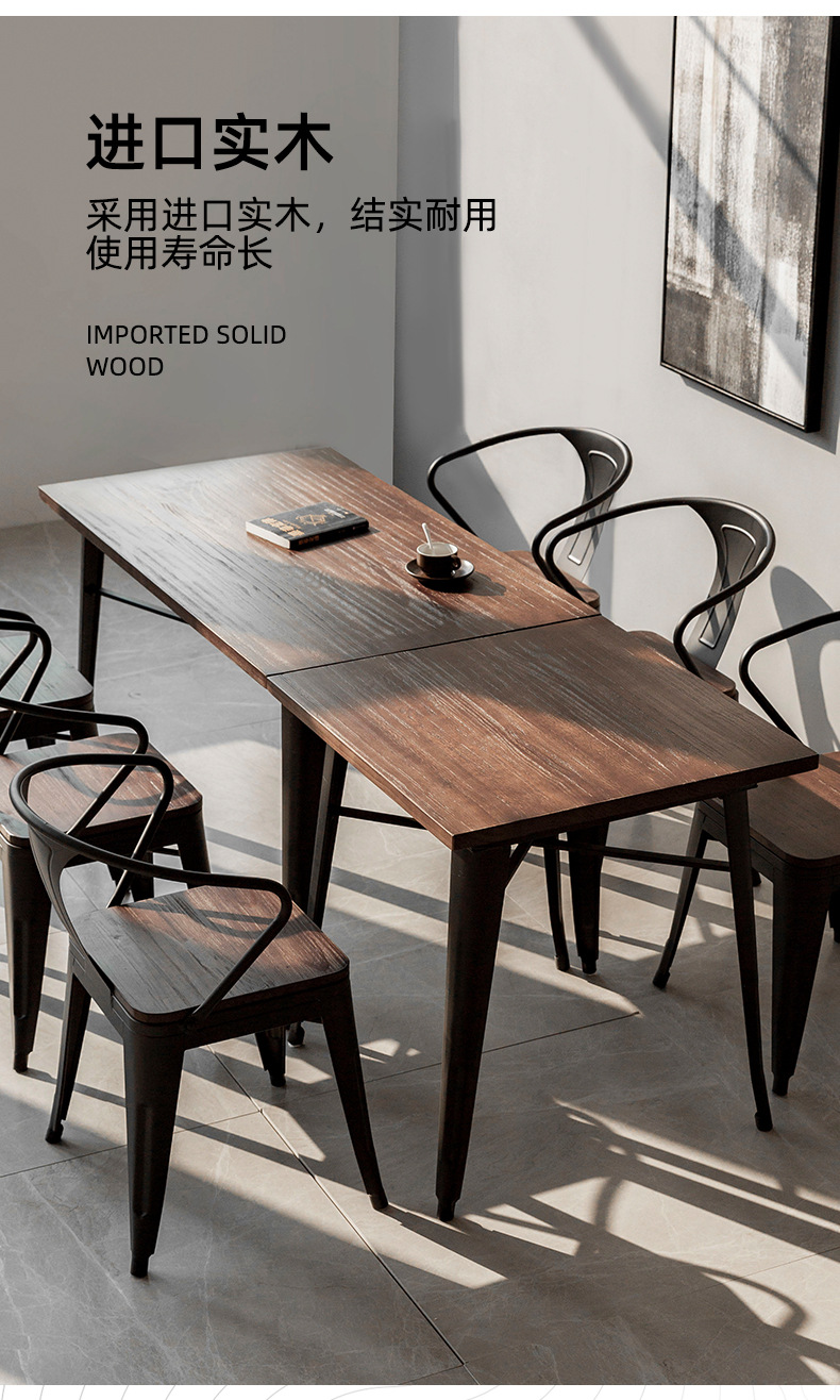 Bàn ăn gỗ nguyên khối nhà hàng hiện đại quán cà phê lưới – BGCF-798 – Mã sản phẩm BGCF-798. Bàn ăn gỗ nguyên khối nhà hàng tối giản hiện đại quán cà phê lưới gió công nghiệp Mỹ kết hợp bàn ghế sắt rèn