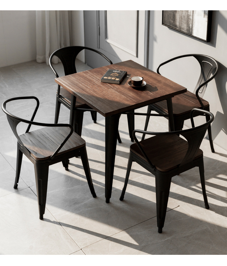 Bàn ăn gỗ nguyên khối nhà hàng hiện đại quán cà phê lưới – BGCF-798 – Mã sản phẩm BGCF-798. Bàn ăn gỗ nguyên khối nhà hàng tối giản hiện đại quán cà phê lưới gió công nghiệp Mỹ kết hợp bàn ghế sắt rèn