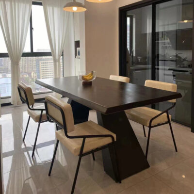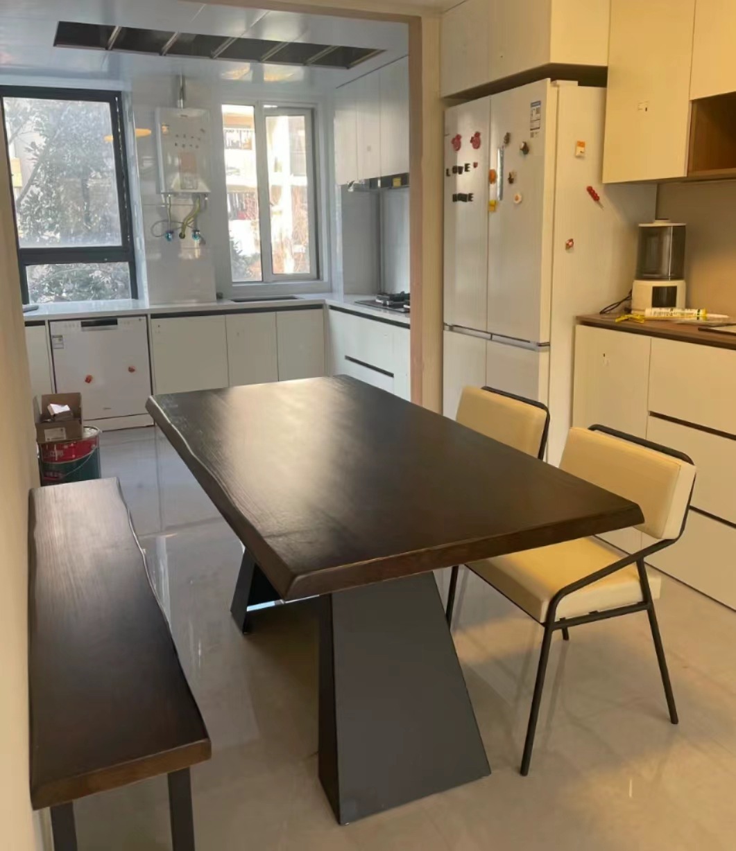 Bàn ăn gỗ nguyên khối phong cách cổ điển thiết kế đơn giản bàn ăn phòng khách gia đình nhà hàng homestay sáng tạo kết hợp bàn ăn và ghế