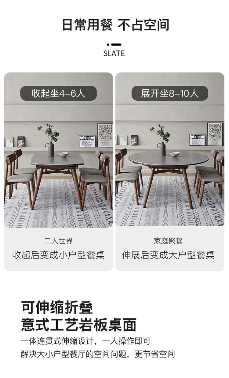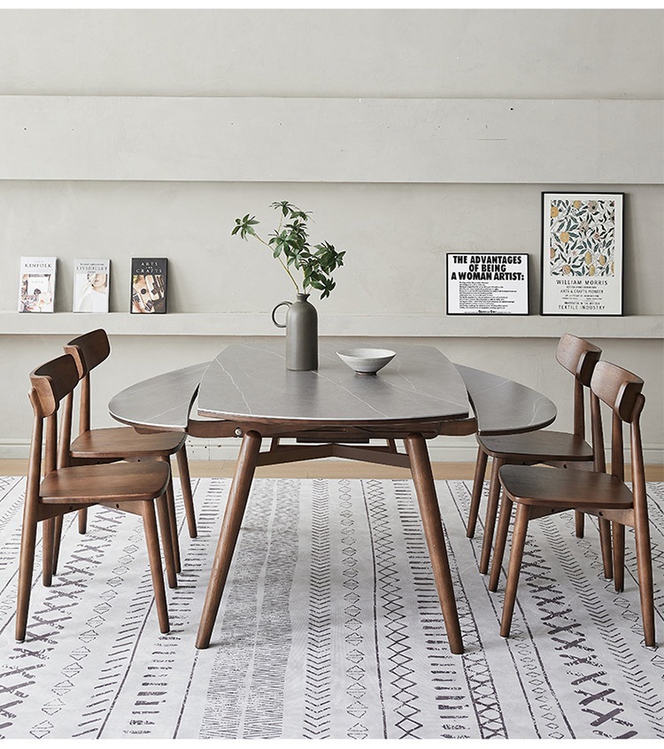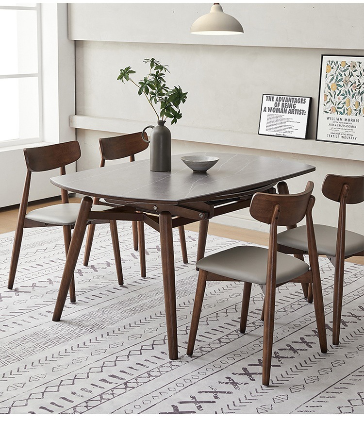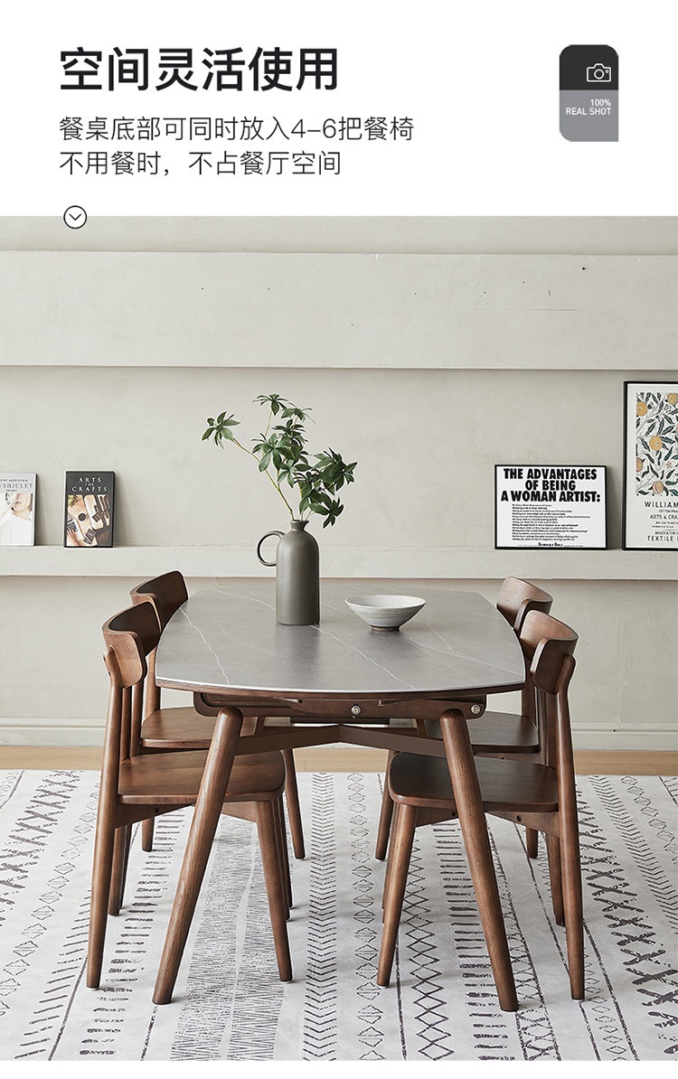 Bàn ăn gỗ nguyên khối tại nhà có thể thu vào bảng đá gấp kết hợp bàn ăn và ghế ánh sáng sang trọng hiện đại đơn giản vuông tròn bàn tròn kép – Bàn ăn nhập khẩu cao cấp