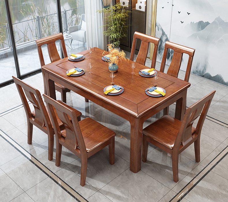 Bàn ăn gỗ óc chó hình chữ nhật bàn ăn tối giản hiện đại nhà gia đình 6 người kết hợp bàn ăn và ghế – Bàn ăn nhập khẩu cao cấp