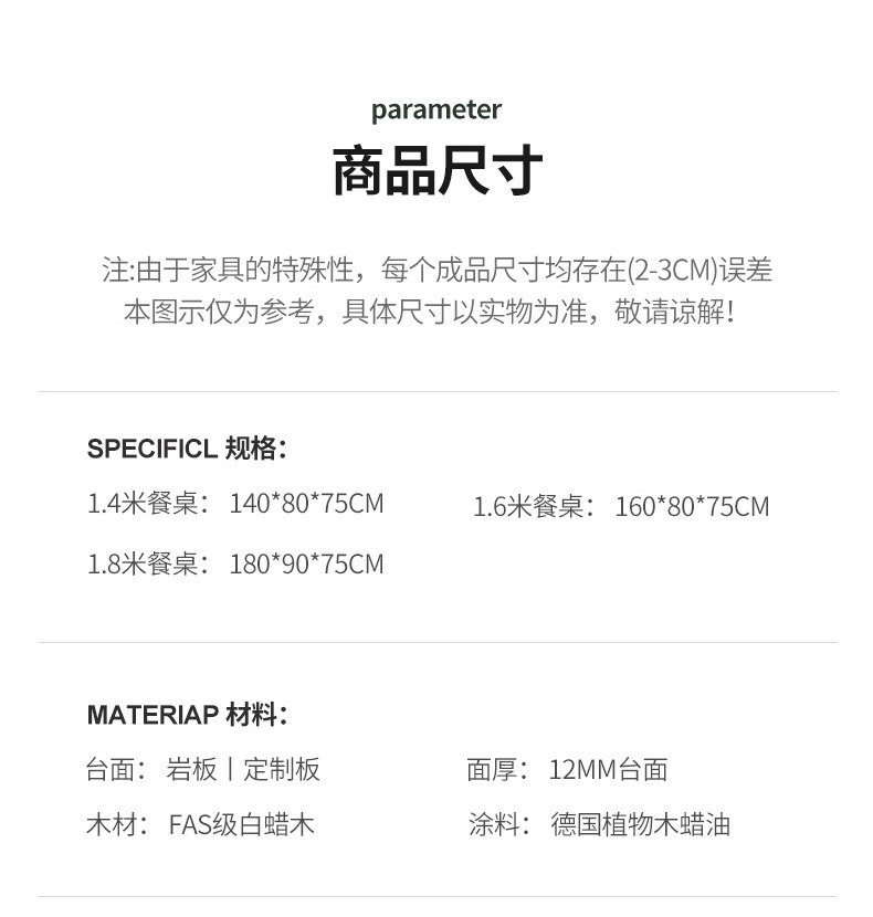 Màu sắc: bàn ăn đơn/bàn đơn+ghế ăn A01 x4/bàn đơn+ghế ăn A01 x6/bàn đơn+ghế ăn A01 x8/bàn đơn+ghế ăn A01 x10/bàn đơn+ghế ăn A02 x4/bàn đơn+A02 ghế ăn Ghế x6/bàn đơn + Ghế ăn A02 x8/bàn đơn + Ghế ăn A02 x10/bàn đơn + Ghế ăn A02 x10 Gấp: Không Model: Bàn ăn SMJ9002 Phương pháp gia công: Tùy chỉnh theo mẫu Có được cấp bằng sáng chế không: Không Có phải không giao hàng đến tận nhà bạn: Giao hàng và lắp đặt Toàn bộ cơ thể có cung cấp dịch vụ lắp đặt hay không: Có Chất liệu trang trí: Ván nhân tạo Có thể thu vào không: Không Cho dù có ngăn kéo: Không Chất liệu: Gỗ nguyên khối Đối tượng sử dụng: Trẻ em/Người lớn/Người cao tuổi/Người cao tuổi nó dành riêng cho xuất khẩu xuyên biên giới Nguồn cung cấp: Không Hình dạng: Cấu trúc nội thất hình chữ nhật: Mã sản phẩm kết hợp: SMJ9002 Thương hiệu bàn ăn: Baierdi Số người sử dụng: 4-8 người Chất liệu mặt bàn: Tấm đá Thông số kỹ thuật: Nhiều thông số kỹ thuật Cho dù có Mô hình 3D: Không Máy tính để bàn có thể điều chỉnh được không: Không Số bằng sáng chế: 1 Có phải là người nộp thuế chung không: Có Chức năng: Đa chức năng/Đa chức năng/Khác/Khác Kích thước: 140*80*75 [Nhận xét về màu sắc của phiến đá – Miễn phí vận chuyển và lắp đặt]/160*80*75 [Lưu ý về màu sắc của phiến đá – Miễn phí vận chuyển và lắp đặt]/180*90*75 [Lưu ý về màu sắc của phiến đá – Miễn phí vận chuyển và lắp đặt]/180 *90*75 [Nhận xét về màu sắc của phiến đá – Miễn phí vận chuyển và lắp đặt] Không gian: Nhà hàng có bếp từ hay không Chức năng: Không Phong cách: Gió Wabi-sabi Có bàn xoay hay không: Không Yếu tố thiết kế: Thiết kế tổng thể