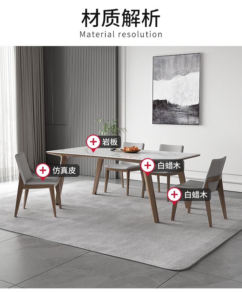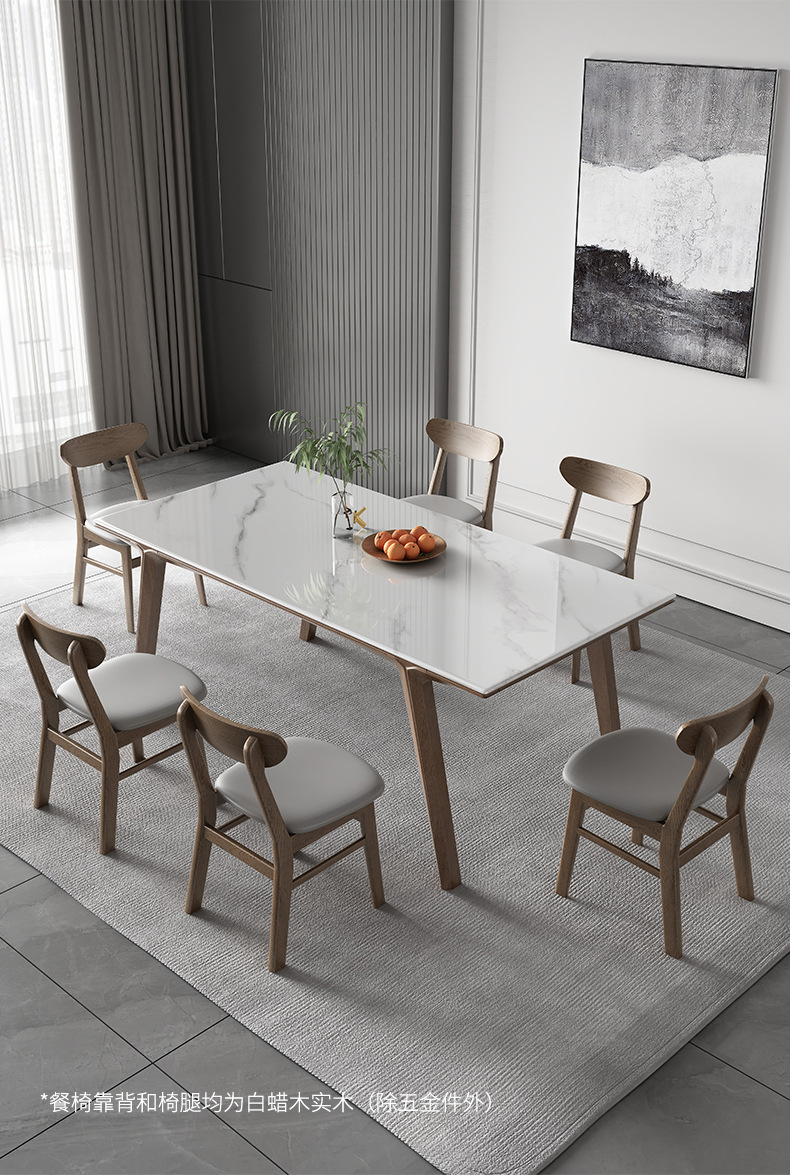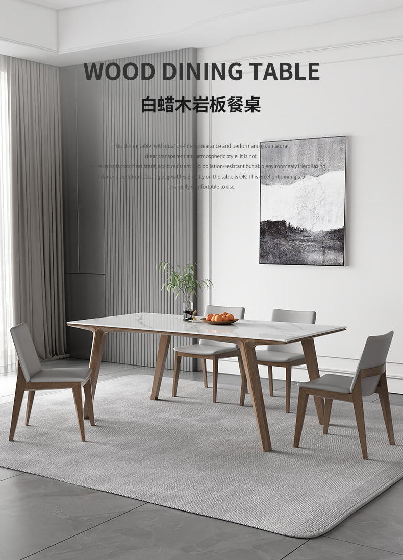 Bàn ăn hình chữ nhật bằng đá phiến tro bàn ăn thiết kế căng tin nhà hàng bộ bàn ghế ăn kết hợp