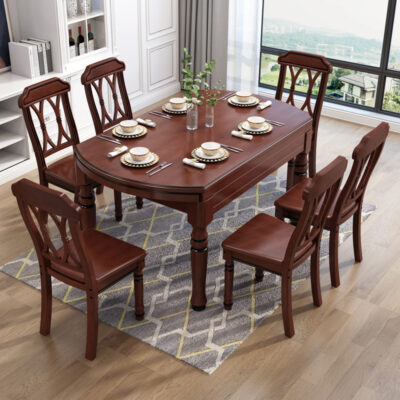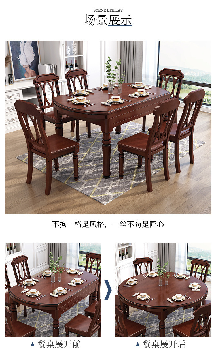 Bàn ăn hoàn toàn bằng gỗ nguyên khối của Mỹ, bàn gấp có thể thu vào, căn hộ nhỏ kiểu cổ điển, đơn giản, nhà ở Châu Âu, kết hợp bàn và ghế tròn đa năng vuông
