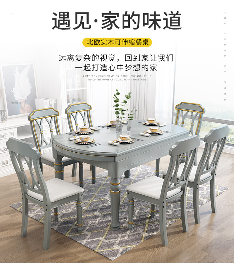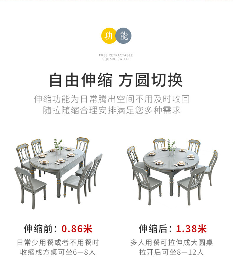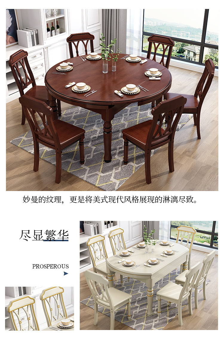 Bàn ăn hoàn toàn bằng gỗ nguyên khối của Mỹ, bàn gấp có thể thu vào, gia đình kiểu cổ điển, đơn giản, nhà ở Châu Âu, kết hợp bàn và ghế tròn đa năng vuông